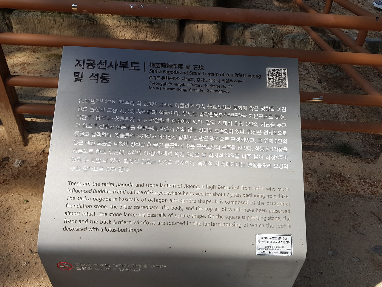 후에 지어진 회암사로 자리를 옮겨 지공 스님, 나옹스님, 무학대사의 부도와 석등, 탑 등을 둘러보았다. 햇빛은 뜨거워지고 강렬해졌지만 사이사이 땀을 식혀가며 답사 대장님의 설명을 들으니 어느새 녹음이 더위를 가라앉혀 주고 있었다.
