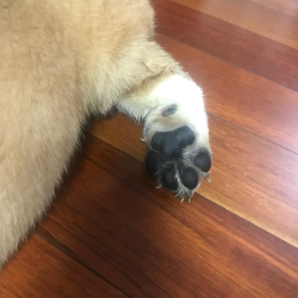 털복숭이 ‘잡채’에게 아기 손길처럼 따스하고 보드라운 살결이 있음을 알았으니 바로 발바닥이었다. 말랑한 그곳에서 연한 어린 것의 온기를 느끼게 되면 끝까지 지켜줘야겠다는 마음이 절로 일어난다. 특히 ‘잡채’는 다리가 짧은 웰시코기의 모습이 있어서 두 발을 모아 있기라도 하면 저절로 그 귀여움에 ‘심쿵’한다.