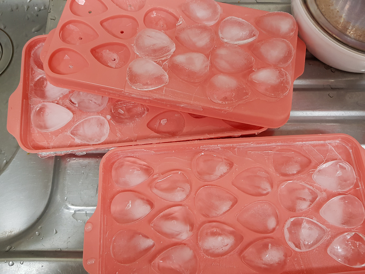 퇴근 후 ‘다이소’에 가서 얼음 얼리는 사각형 틀과 손잡이가 달린 물통을 샀다. 이왕이면 크고 예쁘게 얼리기 위해 루비형 얼음 틀 모양을 선택했다.
