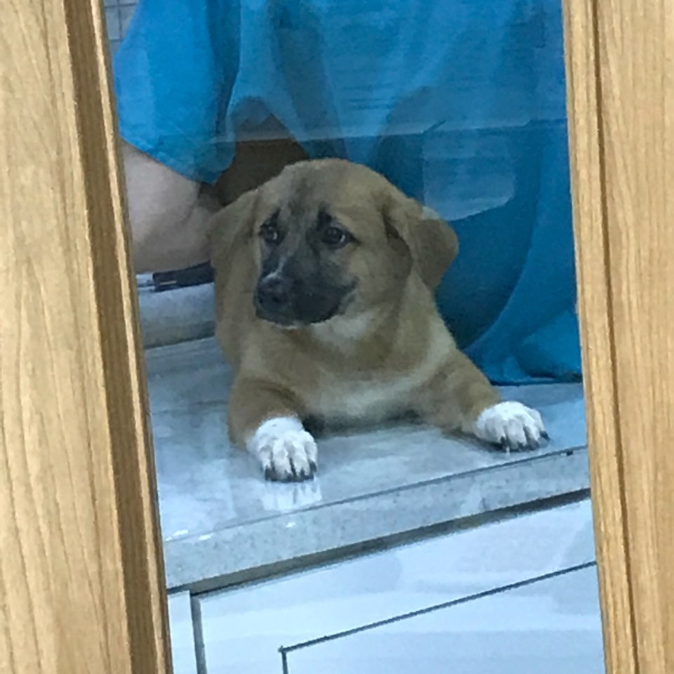 예민하게 반응하는 몇몇 강아지들 틈에서 ‘잡채’는 커다란 덩치가 무색할 정도로 잔뜩 긴장한 채 발발 떨고 다. 묵직한 무게로 내 품에 안겨 바짝 긴장하는 ‘잡채’가 너무 안쓰러워 나는 더 꼬옥 안아준다. 체중계 위에서도 바짝 엎드려 주위 눈치만 볼 뿐 완전 ‘얼음’ 상태 그대로이다.