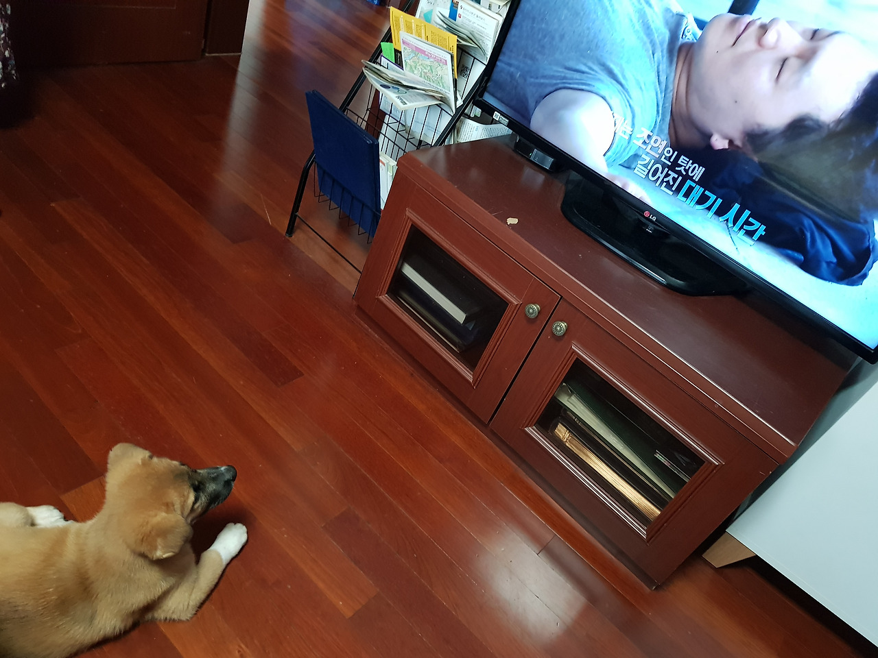 요즘은 슬슬 안방까지 기웃거리더니 떡하니 자리 잡고 앉아 TV 시청까지 해 낸다. 개들만을 위한 ‘Dog TV’도 있다던데 ‘TV 시청 잡채’ 생각만 해도 웃음이 나온다.
