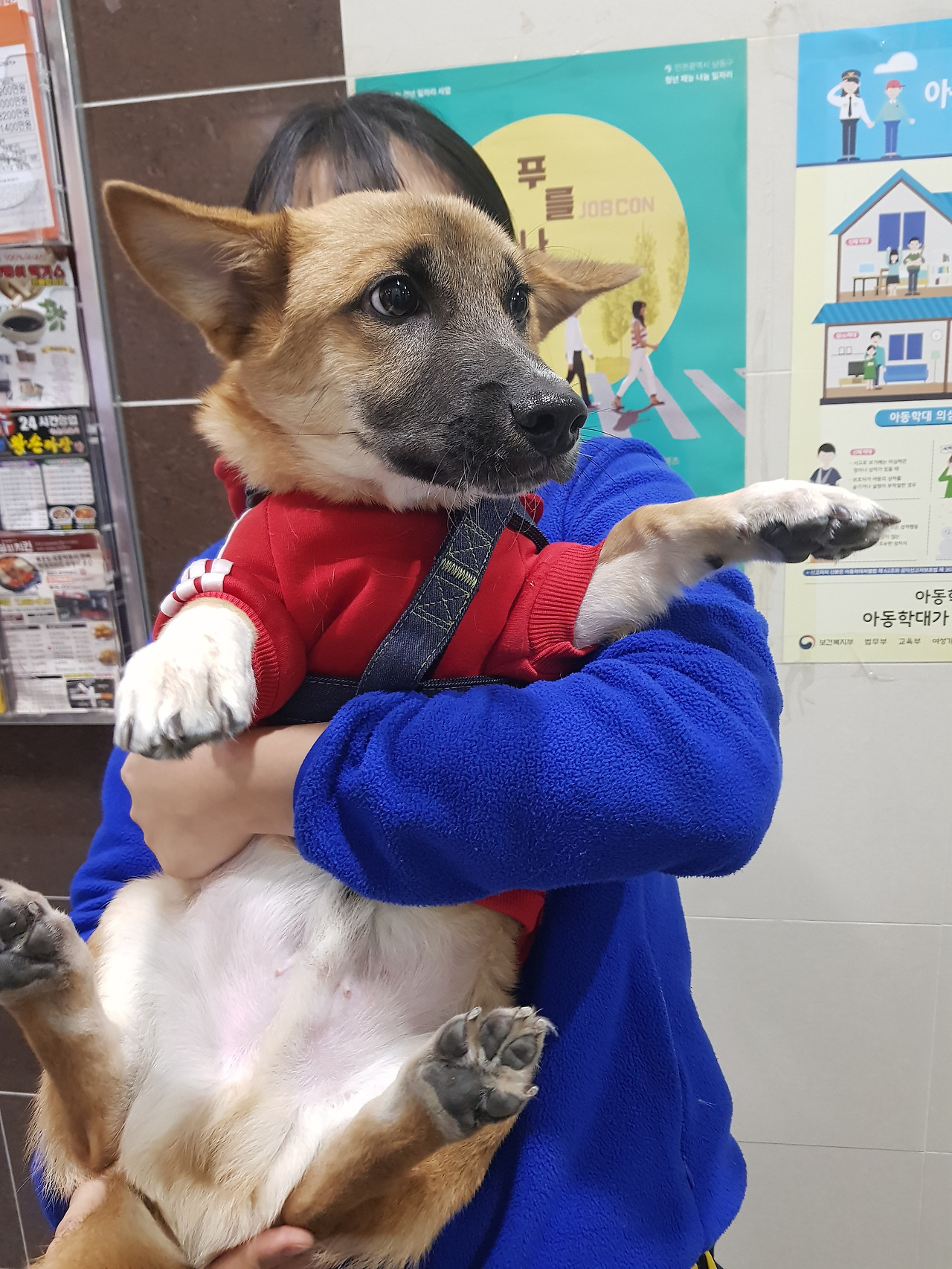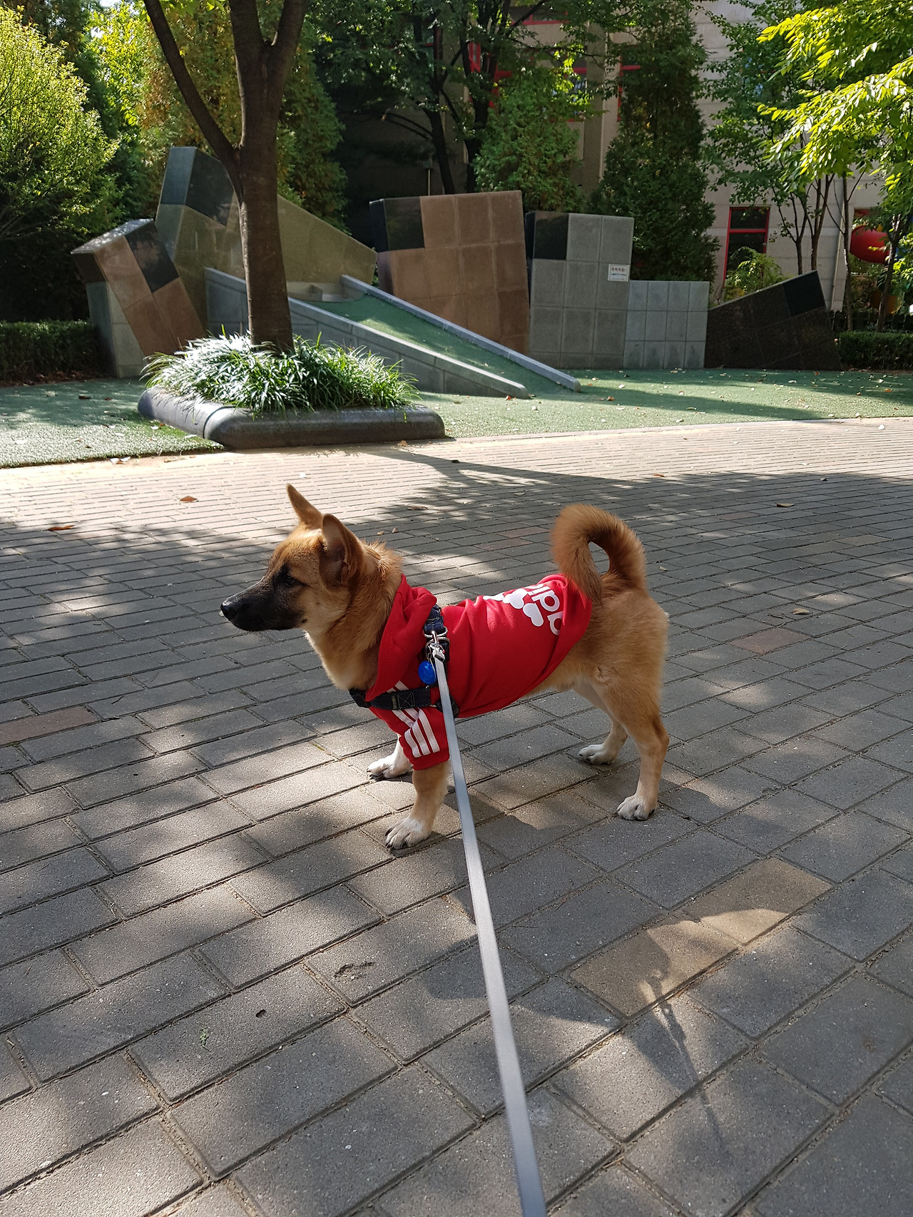 한 달 만에 2배 이상 불어난 몸집 마냥 밖에서 아주 의젓하고 적극적인 강아지가 되어 가고 있다. 처음에는 영역표시한답시고 뒷다리 한쪽을 들어 올리는 시늉조차 어설퍼 보였는데, 요즘은 제법 수컷의 향기를 내뿜으며 아파트 전 영역을 누비고 다닌다.