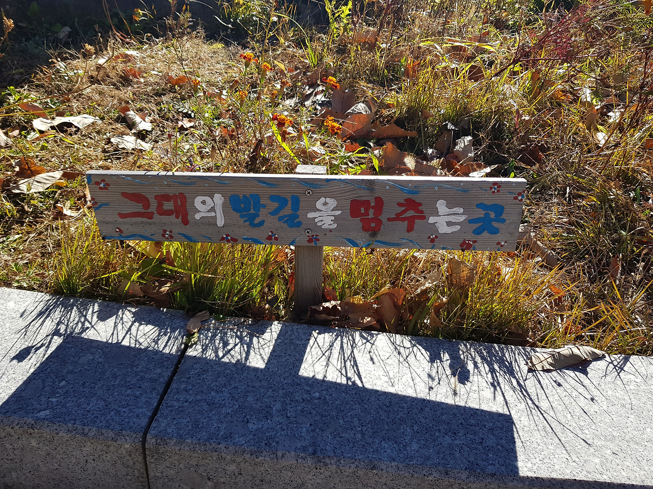 하얀 자작나무의 시원함과 불같이 뜨거운 단풍의 아름다움까지 느낀 후에 인천에 무사히 도착했다. 어두워진 인천대공원 길가에서 서로서로 덕담을 나누며 우리는 헤어졌다. 물론 다음 답사 기약을 잊지 않으며……. 하하호호 웃고 떠드는 동료 교사들과의 즐거움과는 또 다른 색깔의 기쁨을 맛본 남편과의 답사 여행이었다. 머뭇거리는 출발이었지만 어울리며 즐겁게 답사를 마무리한 남편에게도 고마움을 전한다. 아름다웠던 강원도의 하늘과 숲과 폐사지를 떠올리며 이 글을 마무리한다.