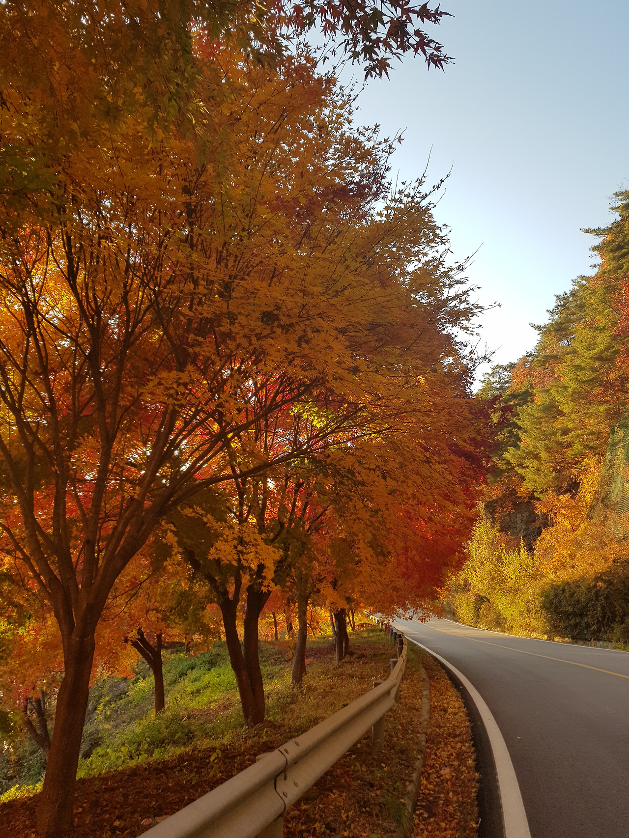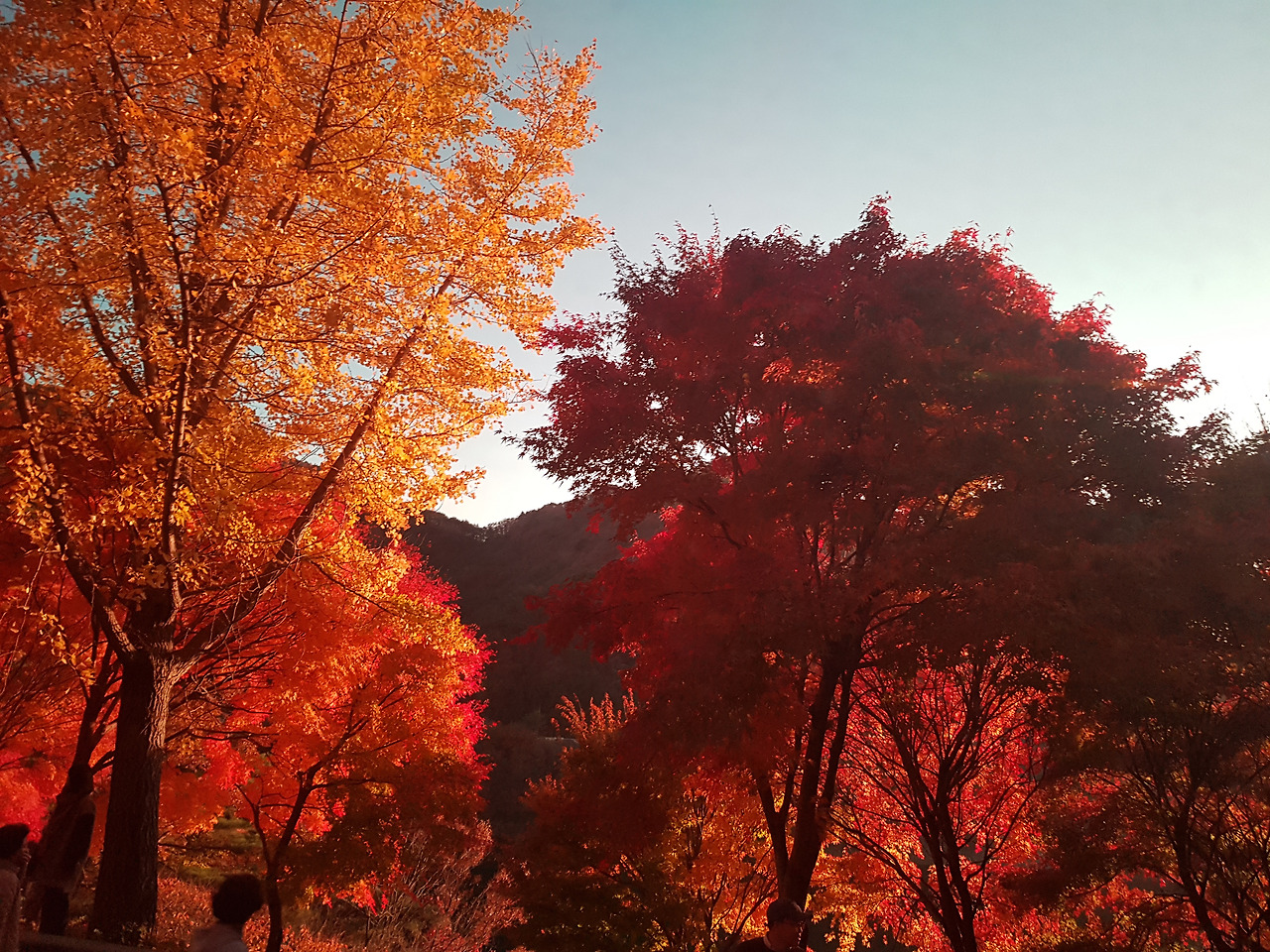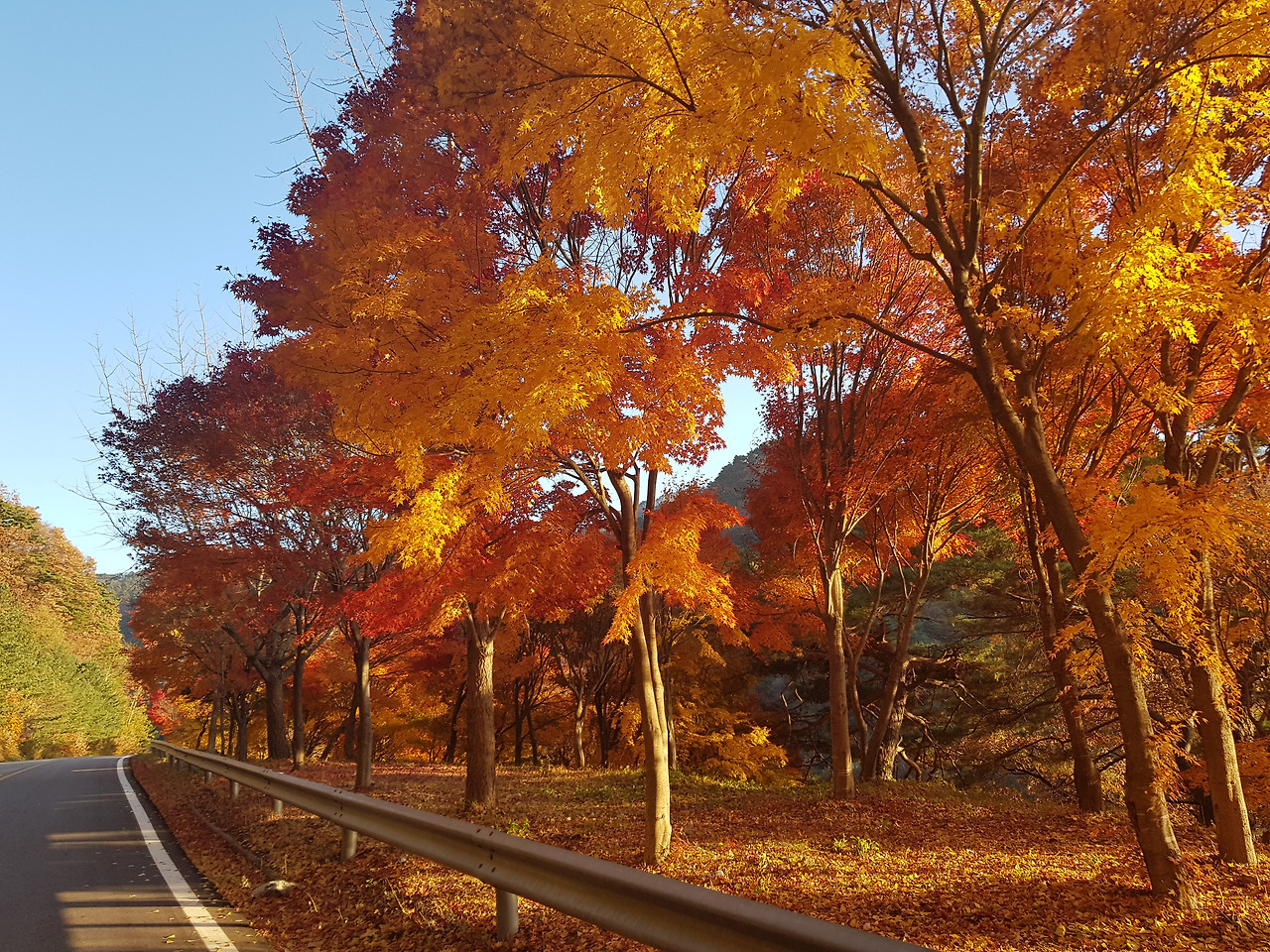 이제 마무리할 시간이다. 차에 올라 타 한잠 자고나면 인천에 도착하겠거니 했는데……. 또 다른 절경이 우리를 기다리고 있을 줄은 몰랐다. 어딘지도 잘 모를 곳에 차를 세우고 우리 모두는 내리며 환호성을 질러댔다. 너무나도 불같이 아름다운 단풍 끄트머리가 감사하게도 우리에게 시간을 내어주었다. 삼삼오오 짝을 지어 아름다운 감탄사를 자아내며 사진 찍기에 빠져들었다. 촉박한 귀가시간에도 불구하고 짬짬이 시간을 내어 답사를 즐기게 하는 여유와 배려가 인천답사의 가장 큰 매력이라 할 수 있다. 답사 대장님은 일부러 차에 오르지 않고, 사람들이 여유롭게 즐길 수 있도록 기다리고 있다는 것을 답사 내외분의 대화를 듣고 알게 되었다. 고맙고 감사한 마음이 흐뭇했다.