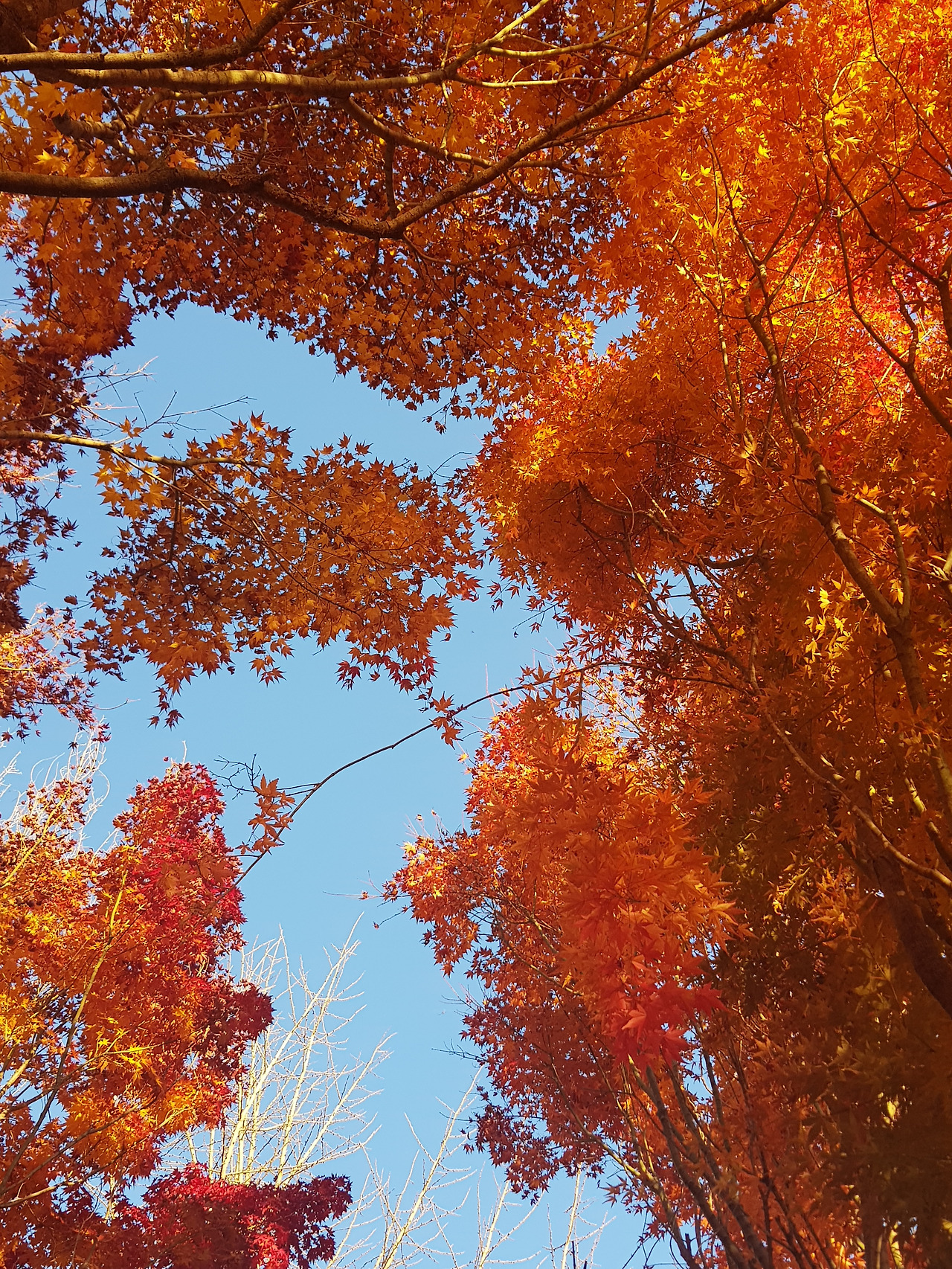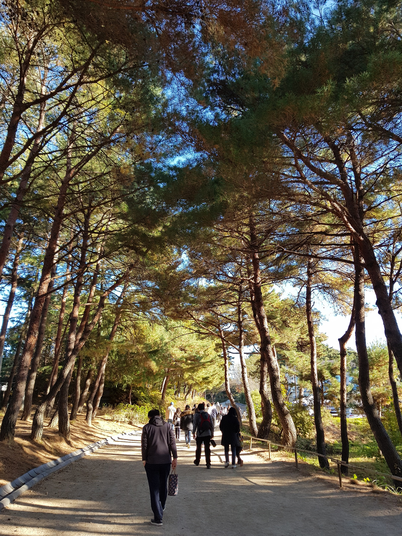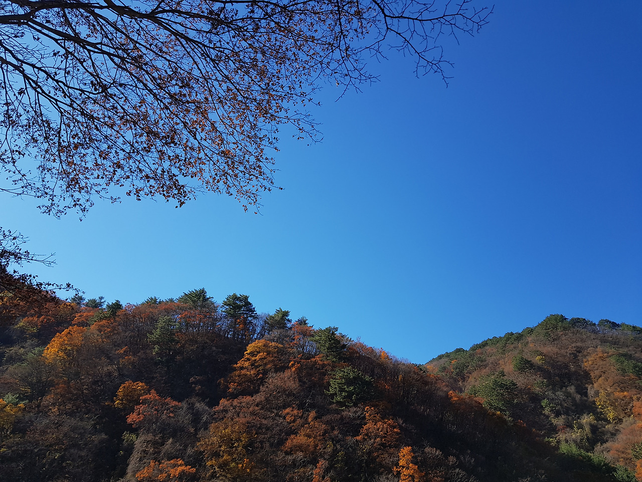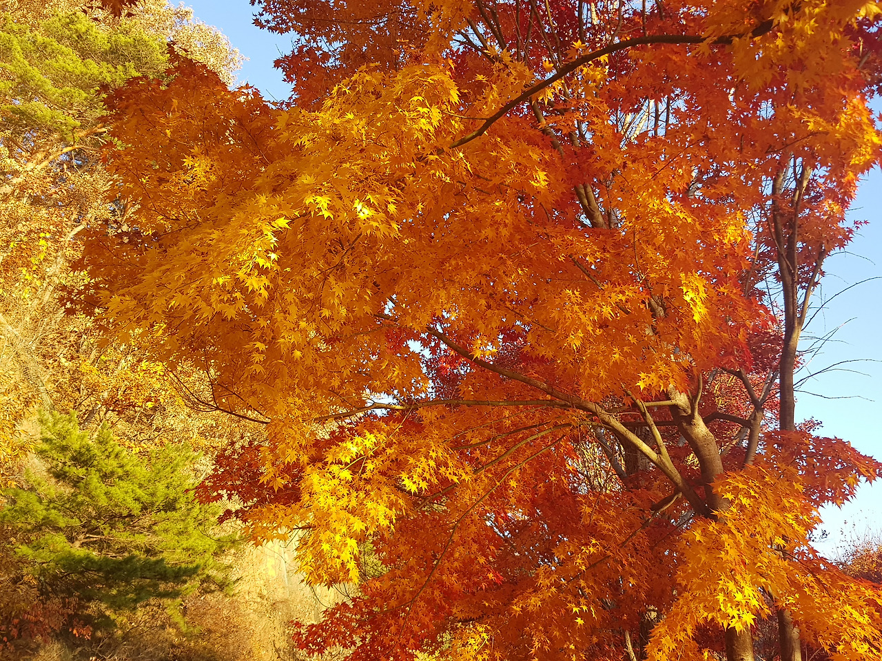 이제 마무리할 시간이다. 차에 올라 타 한잠 자고나면 인천에 도착하겠거니 했는데……. 또 다른 절경이 우리를 기다리고 있을 줄은 몰랐다. 어딘지도 잘 모를 곳에 차를 세우고 우리 모두는 내리며 환호성을 질러댔다. 너무나도 불같이 아름다운 단풍 끄트머리가 감사하게도 우리에게 시간을 내어주었다. 삼삼오오 짝을 지어 아름다운 감탄사를 자아내며 사진 찍기에 빠져들었다. 촉박한 귀가시간에도 불구하고 짬짬이 시간을 내어 답사를 즐기게 하는 여유와 배려가 인천답사의 가장 큰 매력이라 할 수 있다. 답사 대장님은 일부러 차에 오르지 않고, 사람들이 여유롭게 즐길 수 있도록 기다리고 있다는 것을 답사 내외분의 대화를 듣고 알게 되었다. 고맙고 감사한 마음이 흐뭇했다.
