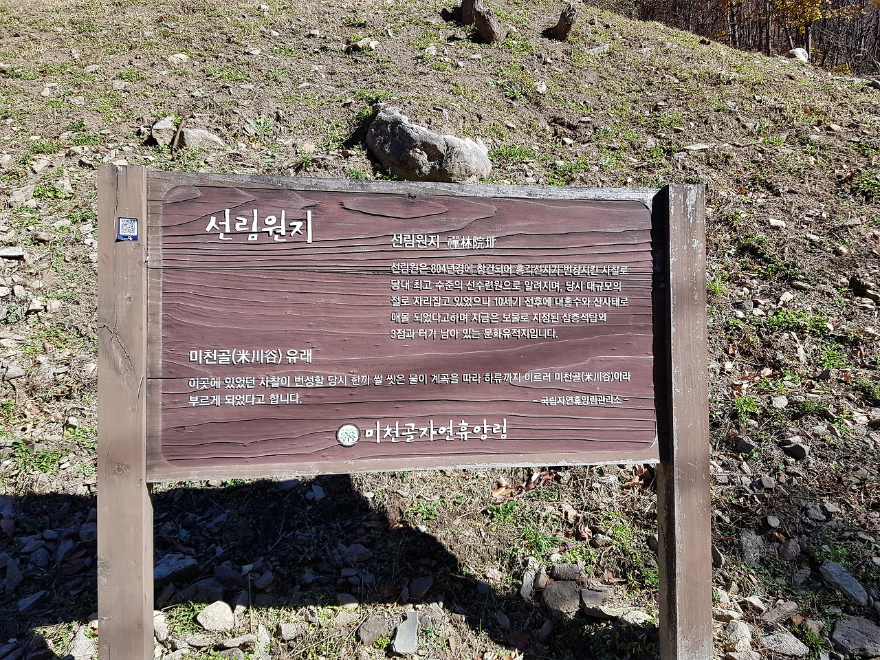 우리가 가고자 하는 선림원지는 낙산사에서 한 시간 가량 달려 도착한 미천골(米川골) 자연휴양림 안에 있었다. 미천골의 미가 美가 아닌 米를 쓴 이유를 들으니 천 여 년 전 얼마나 번창했던 절이었는지 그 규모가 짐작되었다. 스님들이 공양할 쌀을 씻은 물이 이 계곡 아래까지 뽀얗게 흘러내려 올 정도라니……. 길 따라 물 따라 선림원지로 향하는 길 또한 가을 투성이로 아름다웠다.