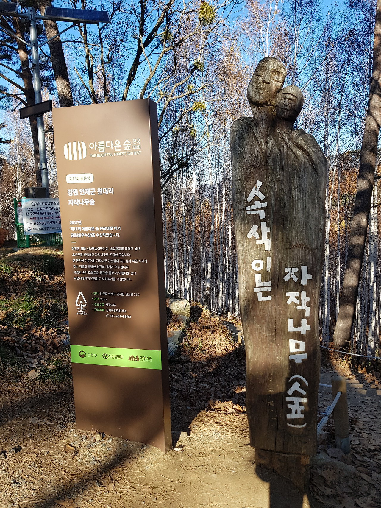 이 가을답사가 설렜던 이유 중의 하나가 답사 일정표에 나와 있는 ‘인제 자작나무 숲’ 이라는 단어 때문이었다. 이곳이 매스컴에서 유명세를 떨칠 때마다 정말 가고 싶었던 곳이기에 기대감이 컸다. ‘자작나무’라는 단어만으로도 예쁨과 멋짐이 가득하다 여겼고, 저 먼 노르웨이에서 하얀 자작나무를 본 것이 아직도 선명하게 아름다웠기에 다시 그 마음을 느끼고 싶었다.
