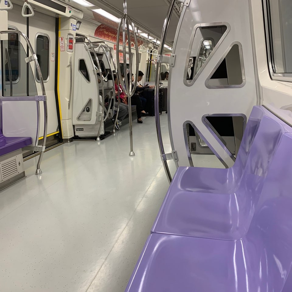 공항에서 시내로 나올 때는 공항철도 MRT를 이용하는데 급행 파란색 라인과 일반 보라색 라인이 있다.