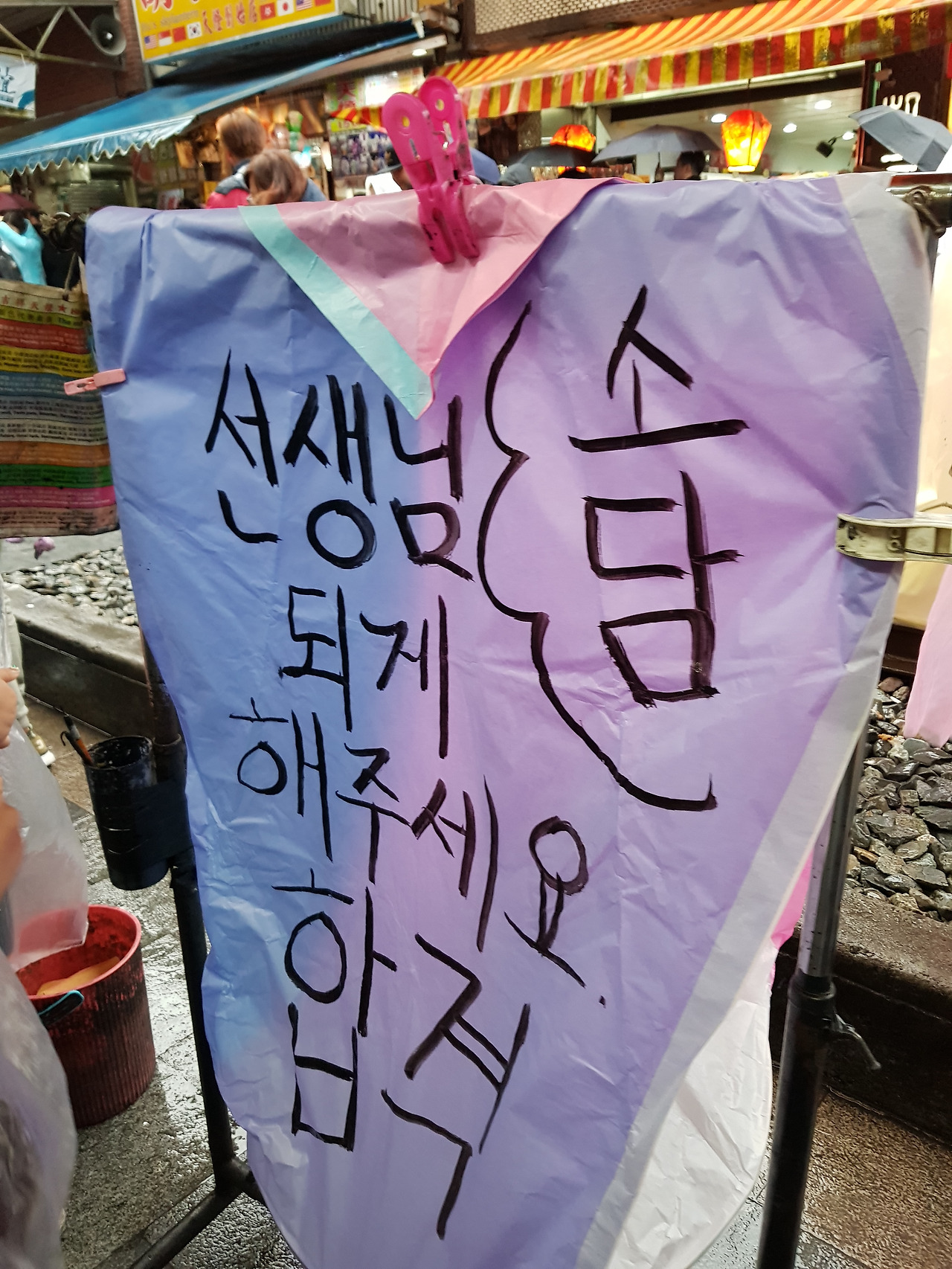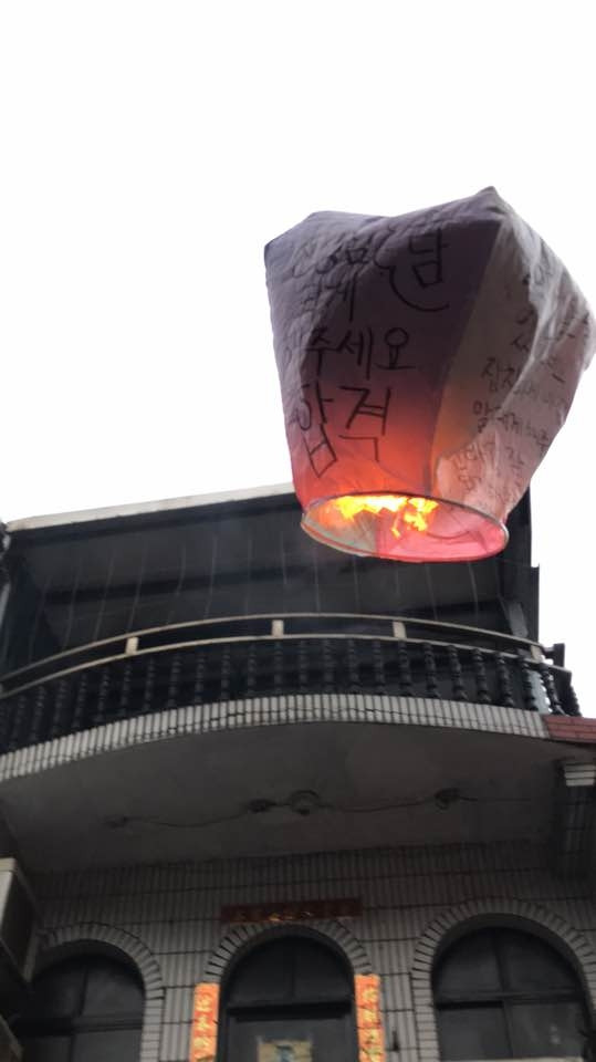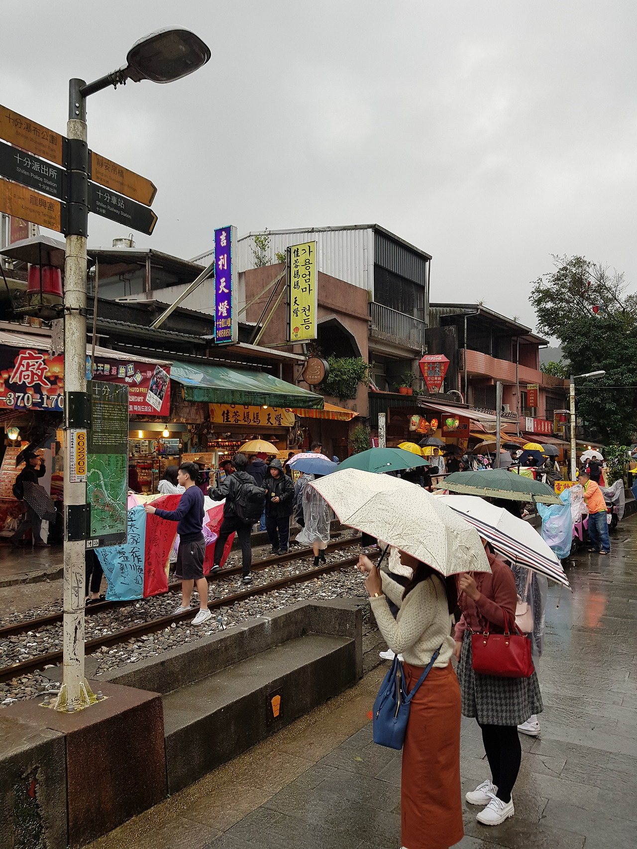 스펀에 도착하니 역시 가랑비가 내렸다. 하루 종일 스프레이로 샤워를 하는 느낌이었다. 철로를 따라 이미 많은 사람들이 풍등에 소원을 적어 날리고 있었다. 수많은 가게들과 수많은 사람들과 수많은 소원들이 일사불란하게 움직이며 ‘포즈 취하고 날리고’를 반복하는 것이 신기할 따름이었다.