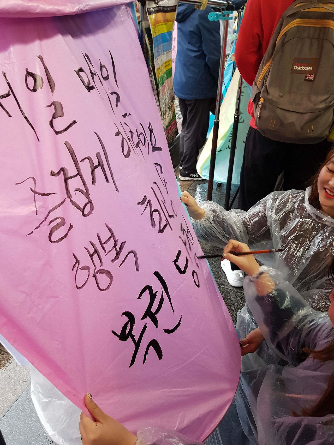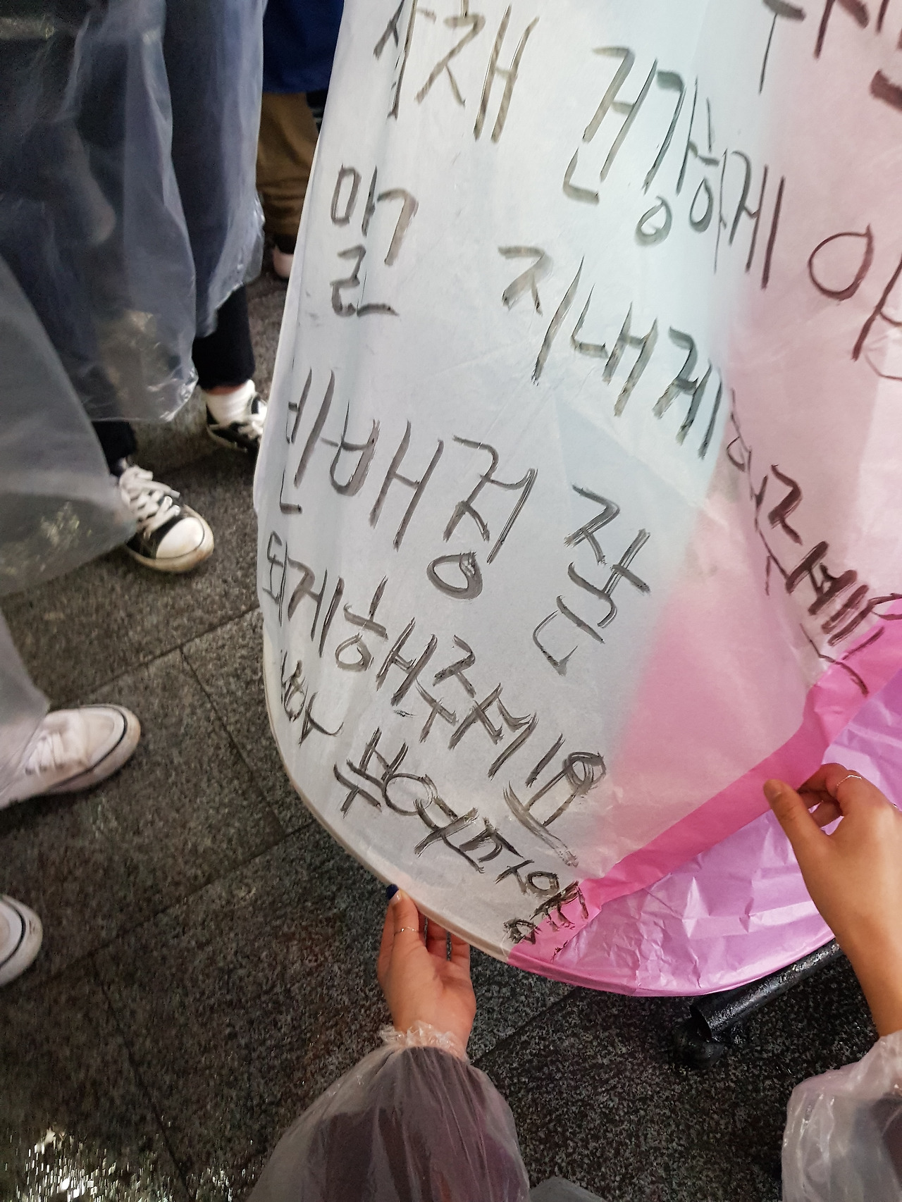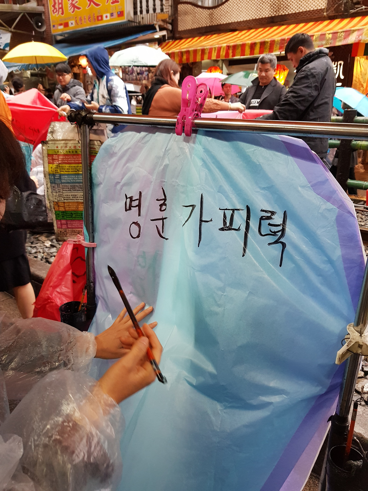 스펀에 도착하니 역시 가랑비가 내렸다. 하루 종일 스프레이로 샤워를 하는 느낌이었다. 철로를 따라 이미 많은 사람들이 풍등에 소원을 적어 날리고 있었다. 수많은 가게들과 수많은 사람들과 수많은 소원들이 일사불란하게 움직이며 ‘포즈 취하고 날리고’를 반복하는 것이 신기할 따름이었다.