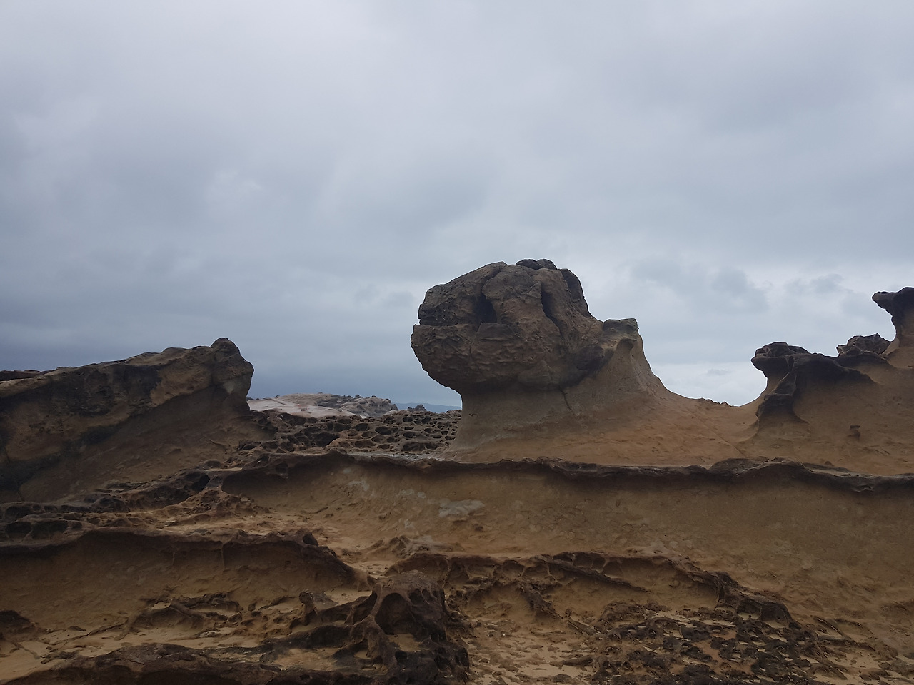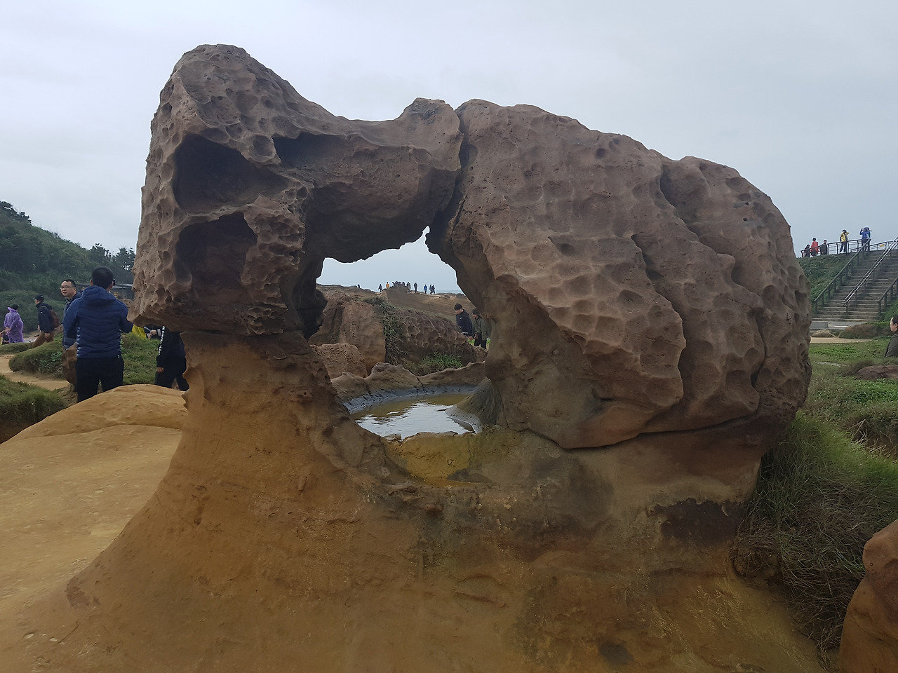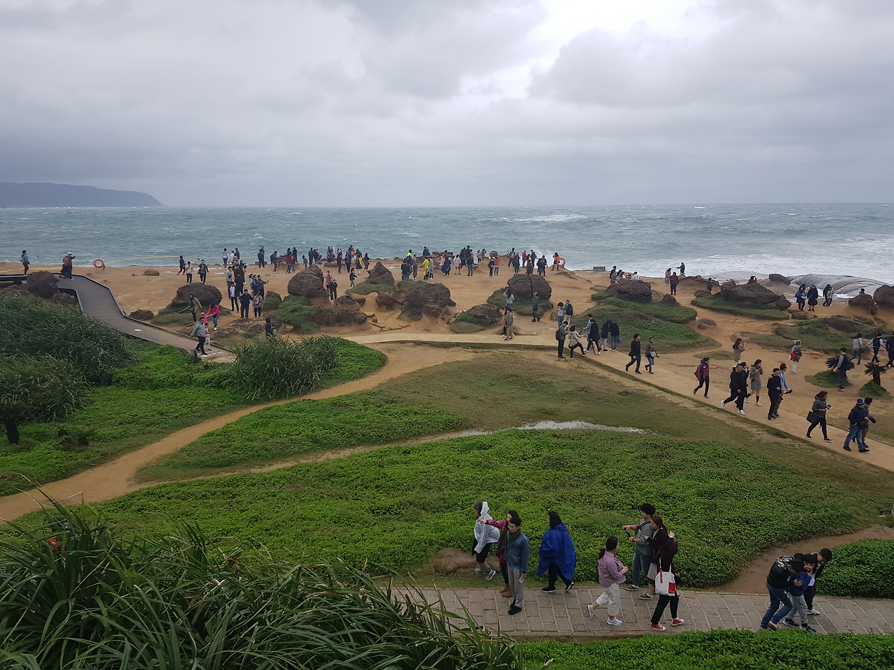 대만을 대표하는 여행지답게 ‘예류 공원’ 안에는 한국 사람들로 가득했다. 그나마 이른 시간이라 사람들이 좀 적었고, 파도도 잔잔할 때라 여행하기에 좋았다. 우리가 두어 시간 머물다 나온 곳은 바닷물결이 높아져 접근금지 라인이 뒤로 밀려나 나중에 온 여행객들에게는 제한된 곳이 되었다. 일찍 서두른 덕분에 느긋하게 여기저기 희한한 바위와 유명한 바위들을 만지며 돌아볼 수 있었다.
