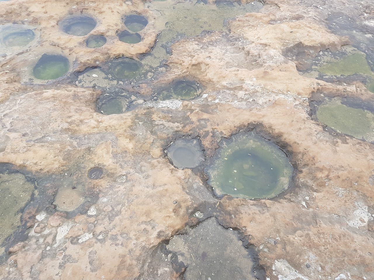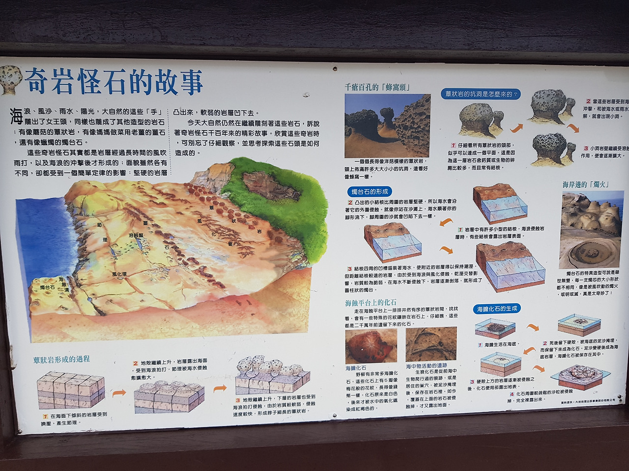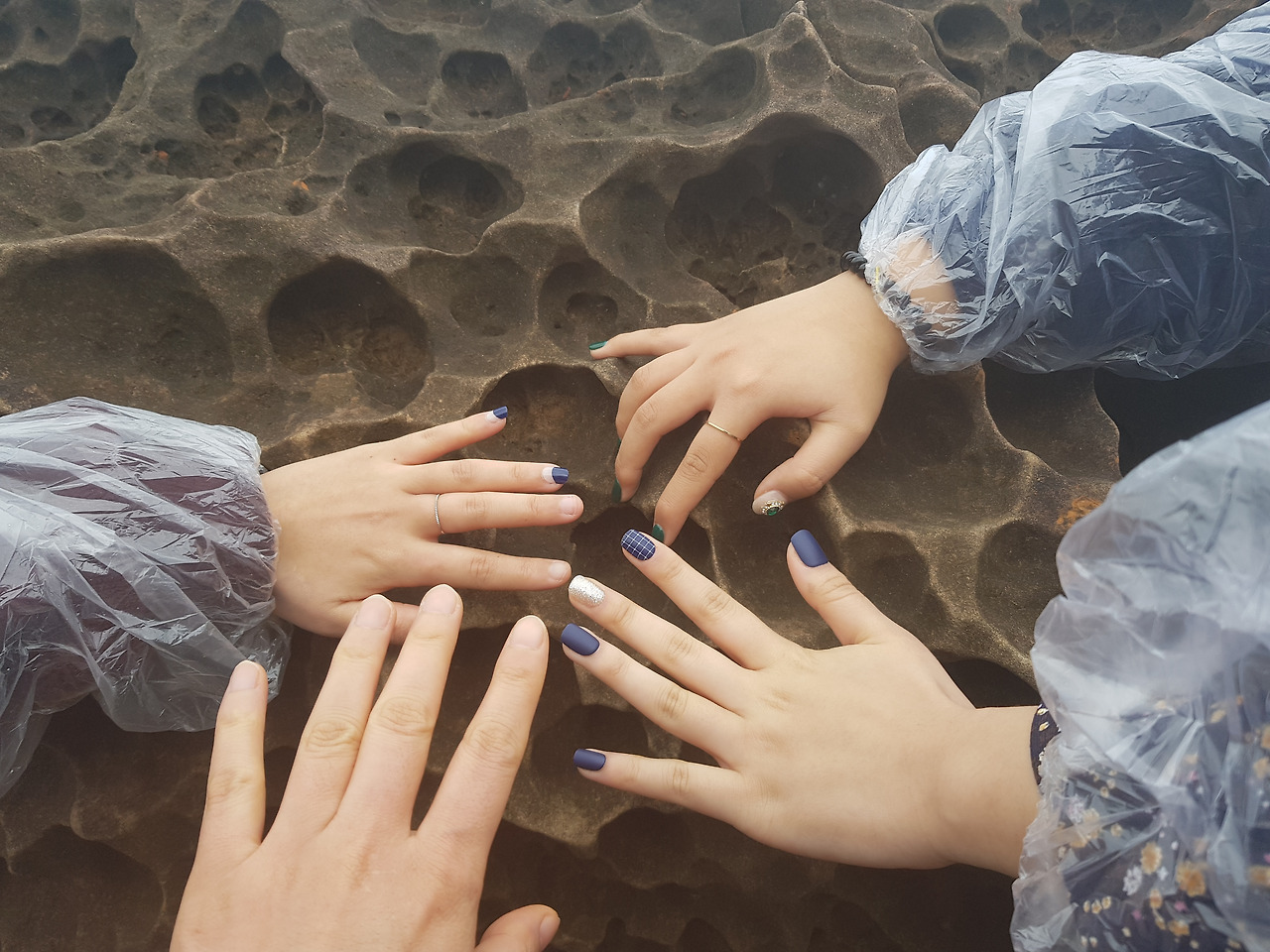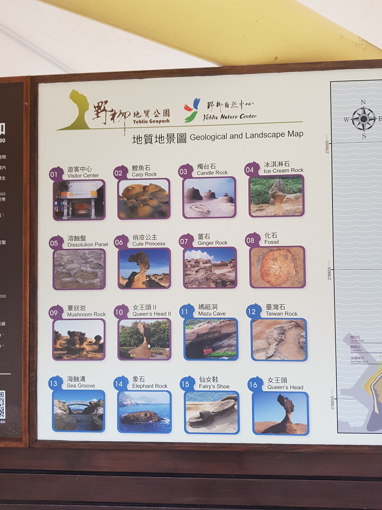 대만을 대표하는 여행지답게 ‘예류 공원’ 안에는 한국 사람들로 가득했다. 그나마 이른 시간이라 사람들이 좀 적었고, 파도도 잔잔할 때라 여행하기에 좋았다. 우리가 두어 시간 머물다 나온 곳은 바닷물결이 높아져 접근금지 라인이 뒤로 밀려나 나중에 온 여행객들에게는 제한된 곳이 되었다. 일찍 서두른 덕분에 느긋하게 여기저기 희한한 바위와 유명한 바위들을 만지며 돌아볼 수 있었다.