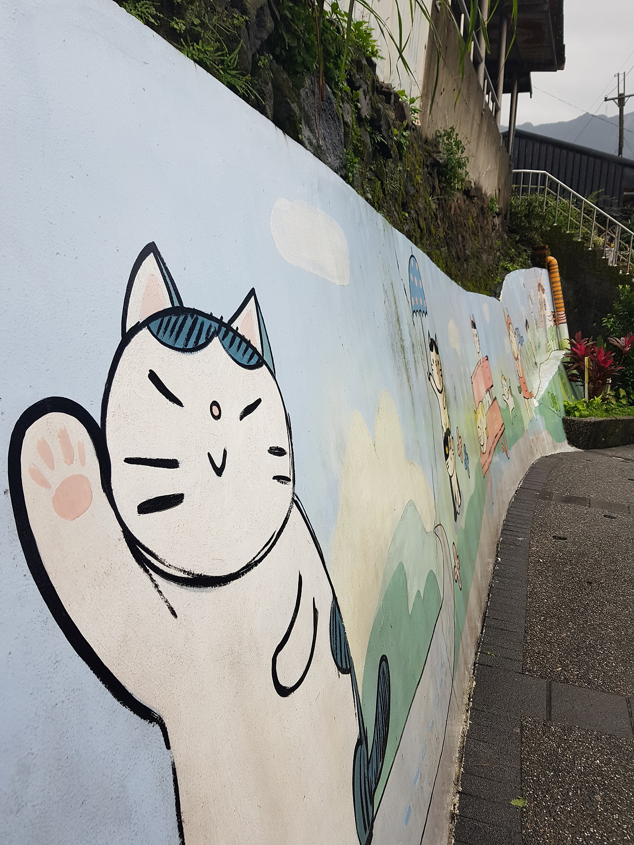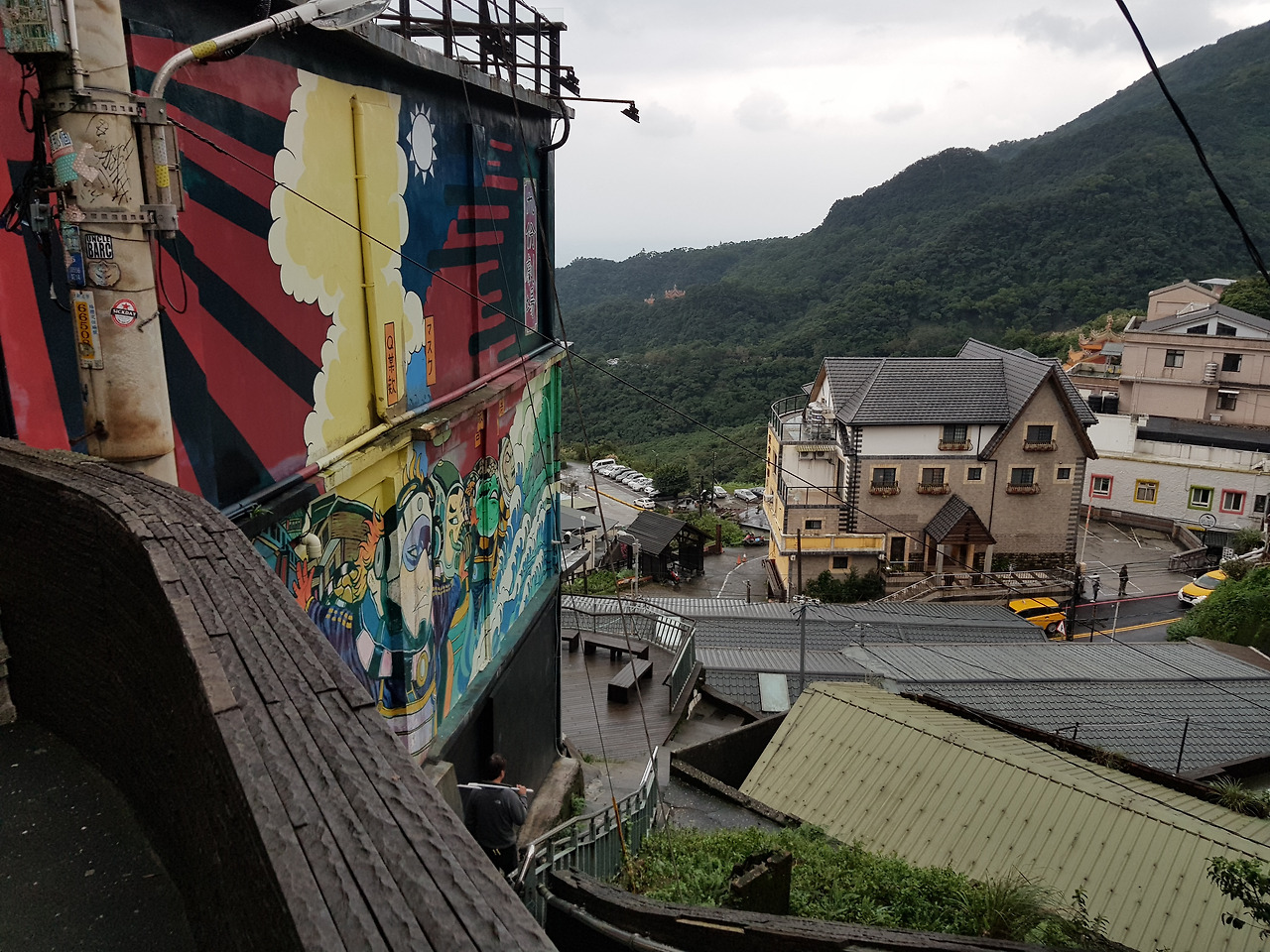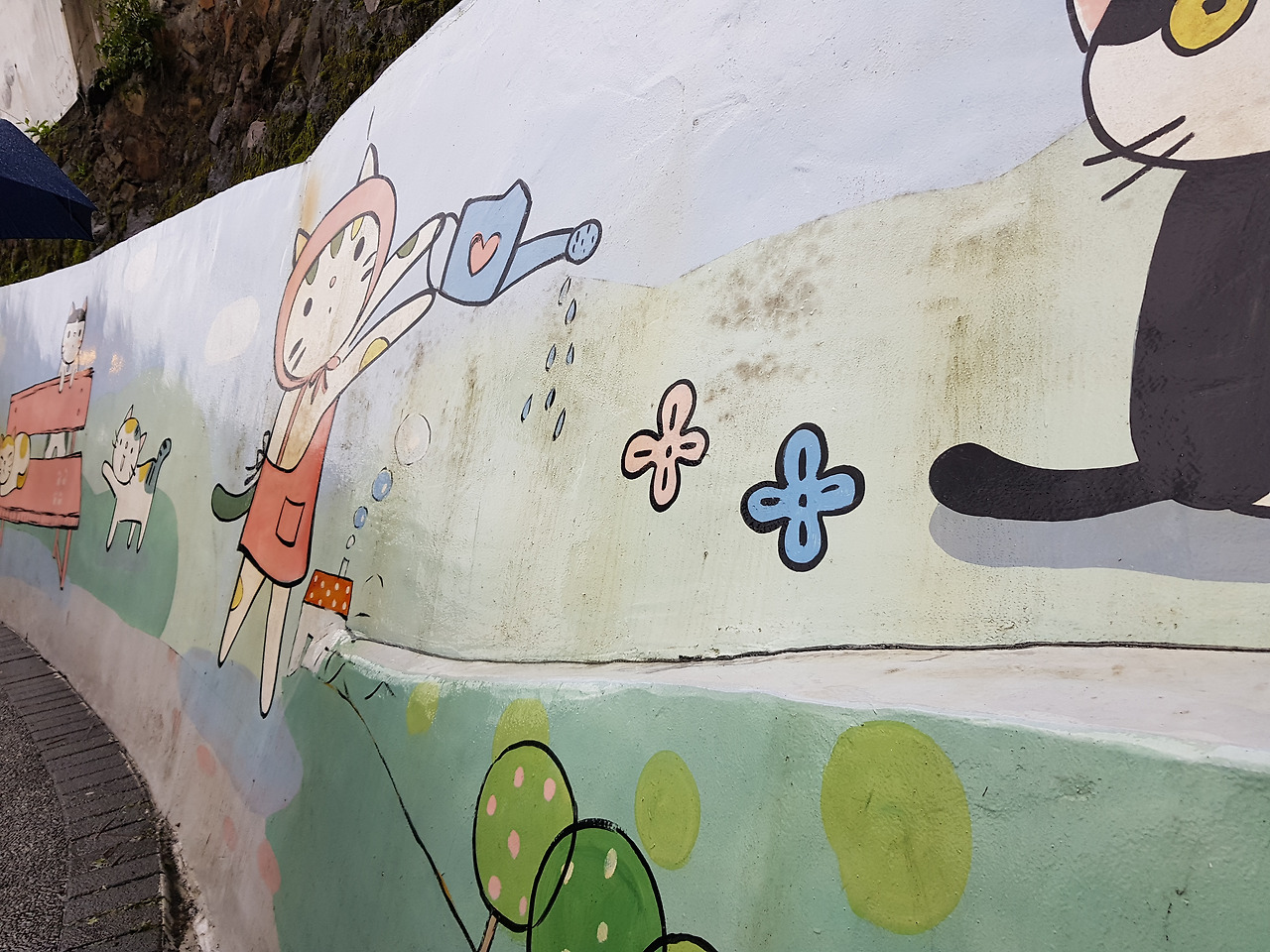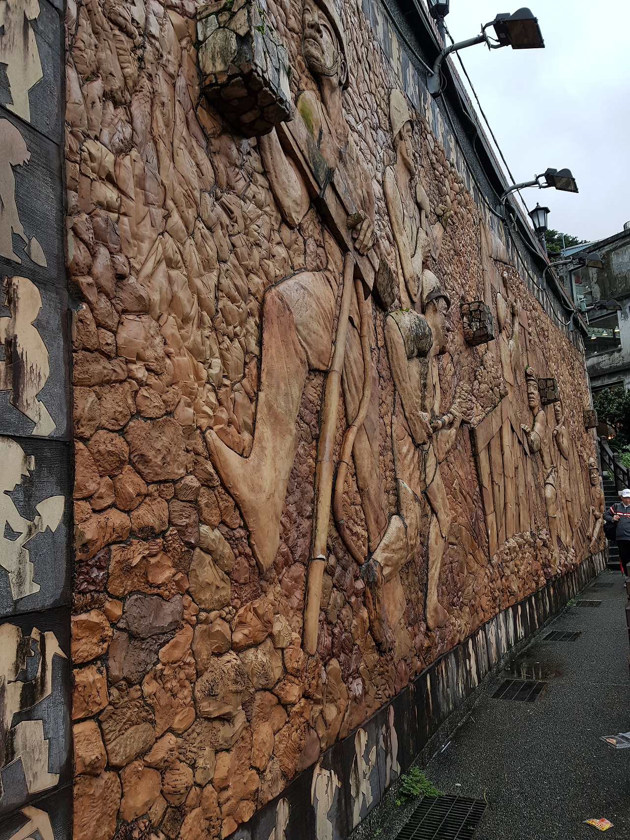 '지우펀'의 역사를 드러내는 듯한 역동적인 벽면 그림