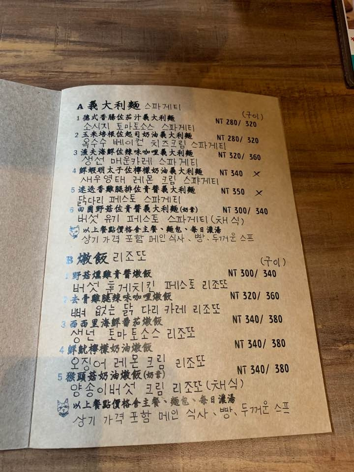 메뉴판 맨 아래 두꺼운 스프? 뜨거운 스프가 맞겠지요? ㅋㅋ