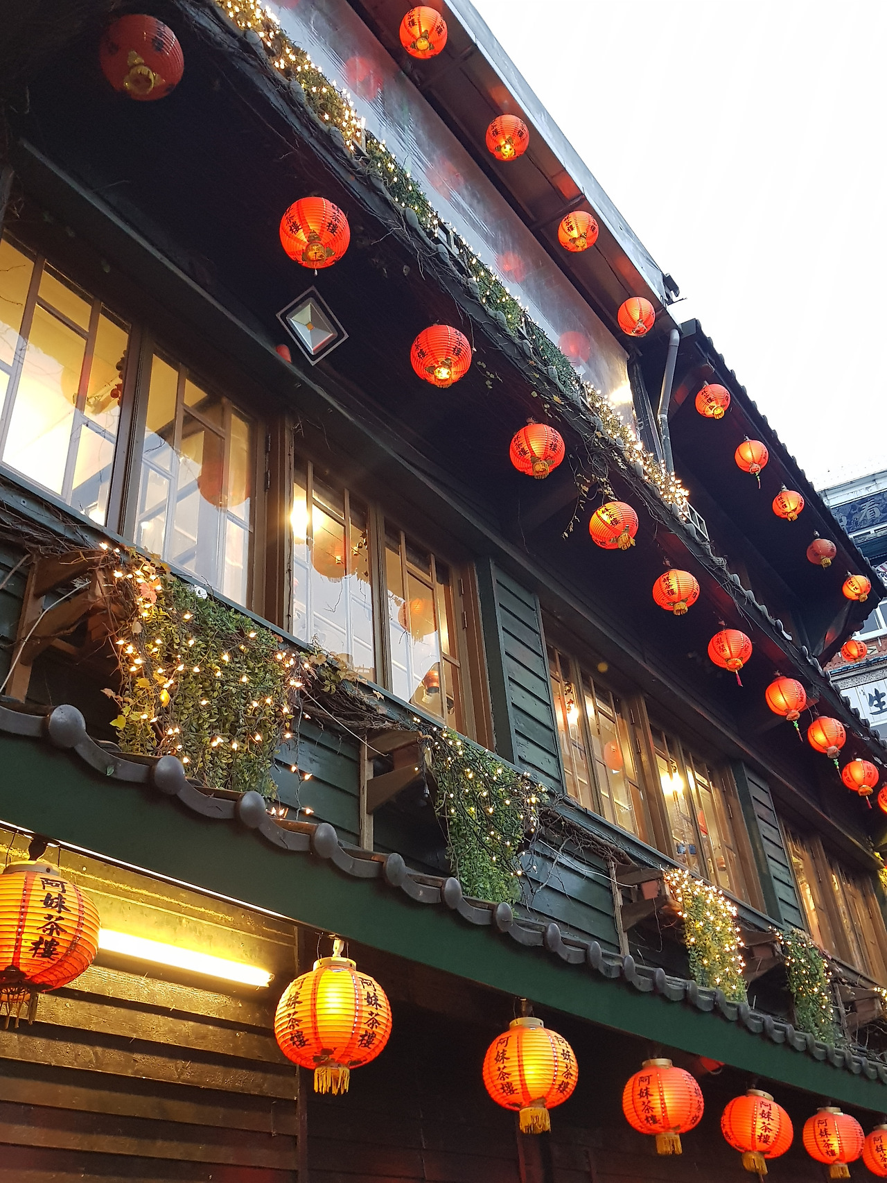 해가 지고 하나둘 등이 켜지면 찻집이 이렇게 보인다.
