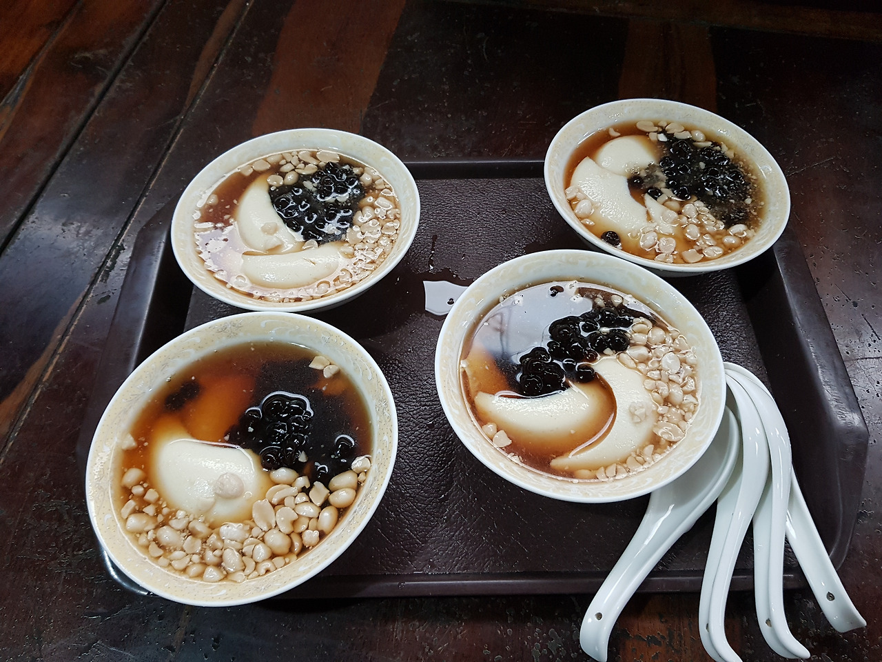 택시투어에서 서비스로 사 준 먹거리(진주 두부)-순두부와 콩? 내 입에는 좀 달았다.