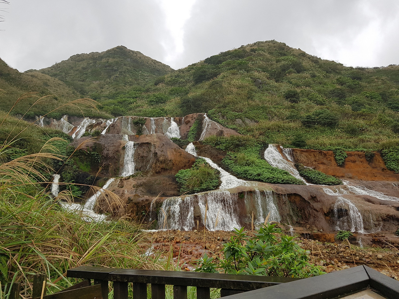 진과스의 ‘황금 폭포’는 특이했다. 쉴 새 없이 내리는 가랑비 속에서 여유롭게 감상할 수는 없었지만 여러 갈래로 흘러내리는 폭포의 색감은 장관이었다. ‘진과스’와 ‘수이 난 둥’을 잇는 ‘진수이’ 도로에서 주변을 둘러보기도 하며 사진을 찍었다. ‘진과스’와 ‘주펀’에서 배출된 광물이 샘물과 만나 녹슨 것으로 다량의 금속이온이 함유된 산성수라 물놀이도 하면 안 되는 물이라지만 황금색 폭포의 색감은 당연 으뜸이었다.