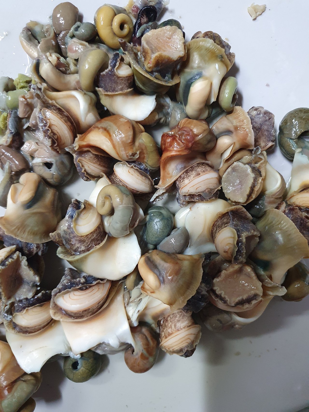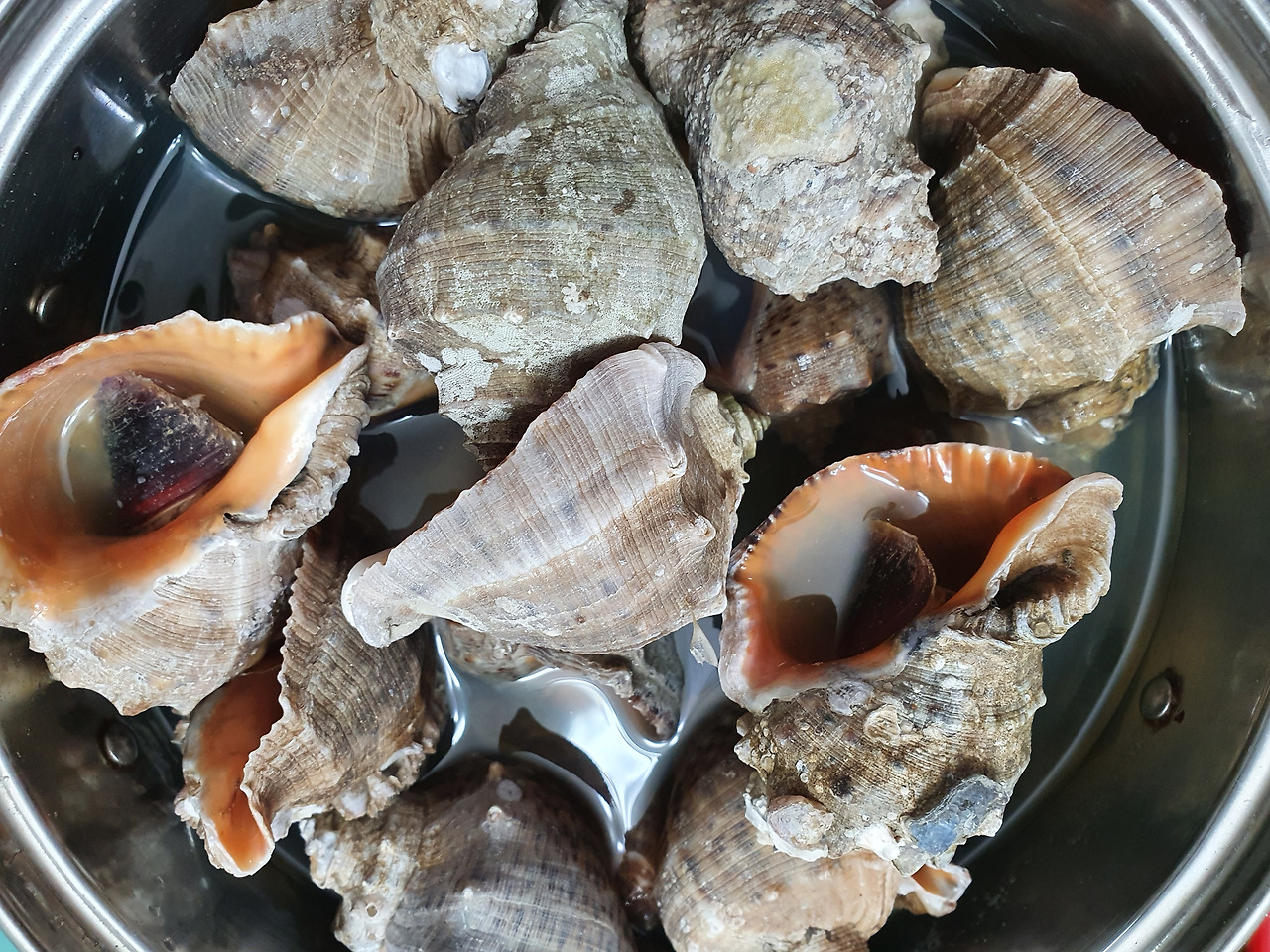 ♡ 소라를 껍데기 째 솔로 잘 닦는다.