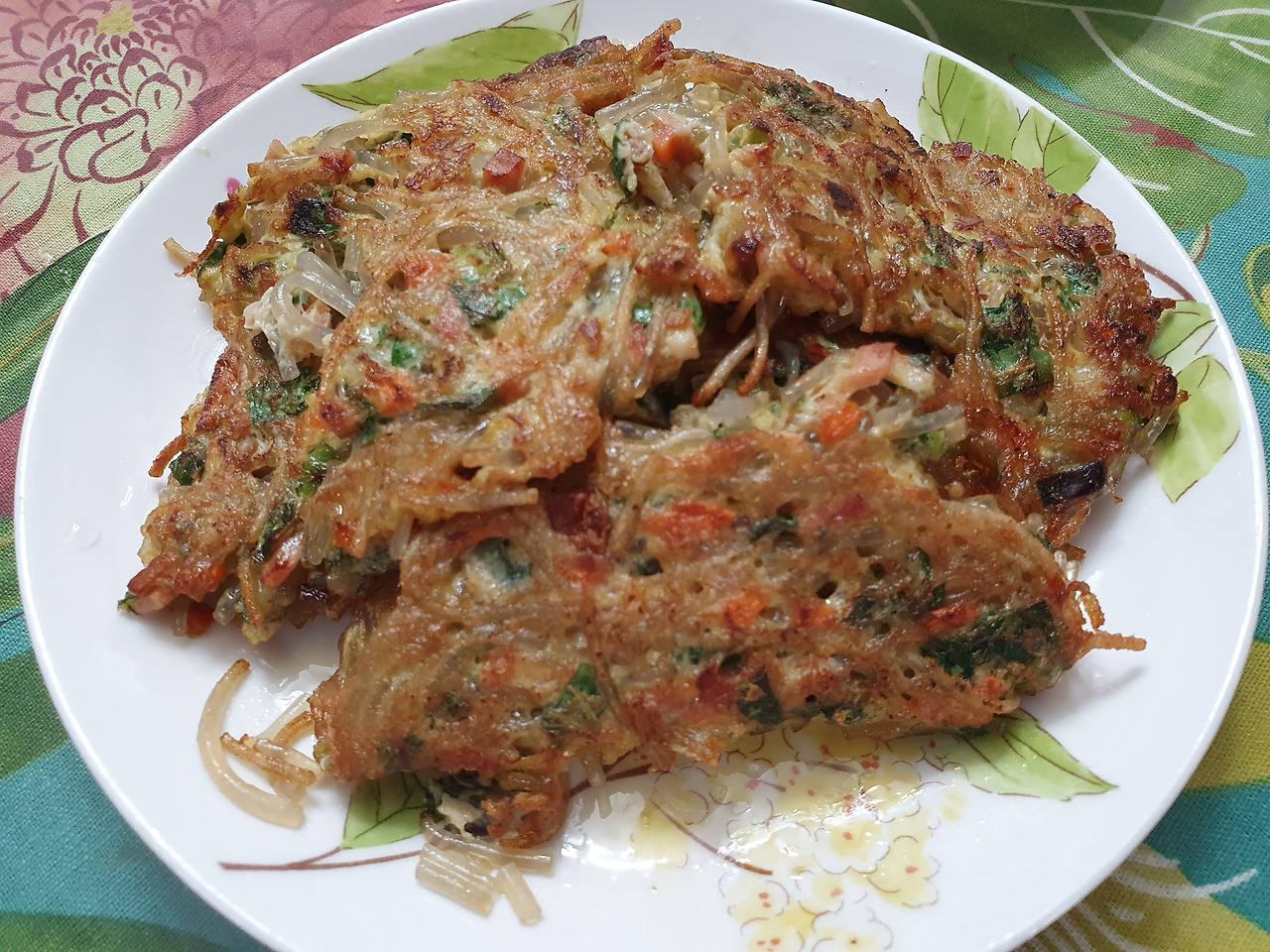 ♡ 팬에 반죽을 타원형으로 떠 넣어 길게 부친다.