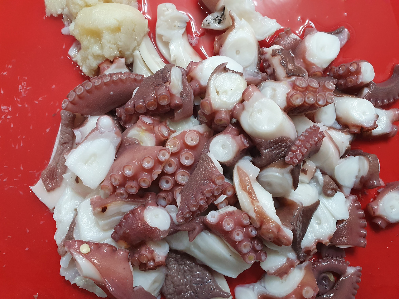 ♡ 문어를 빨판까지 꼼꼼히 잘 씻는다.(살아 움직이는 힘이 강해 씻기 쉽지 않다.)