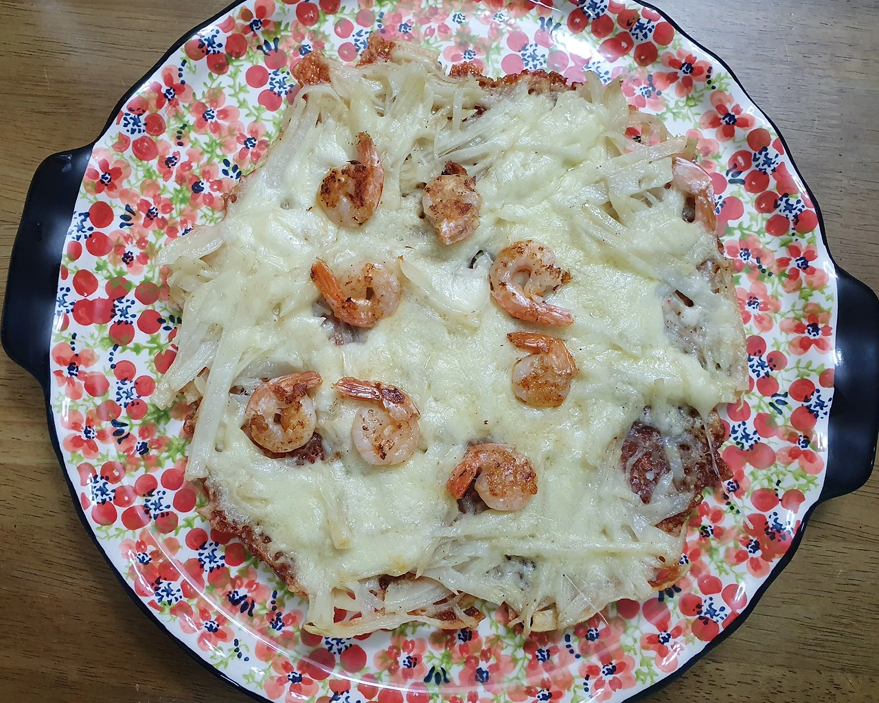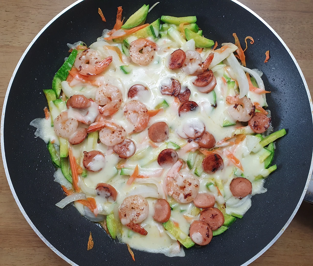 ♡ 모차렐라 피자치즈를 넉넉히 올려 불을 줄이고 은근히 익혀 완성했다.