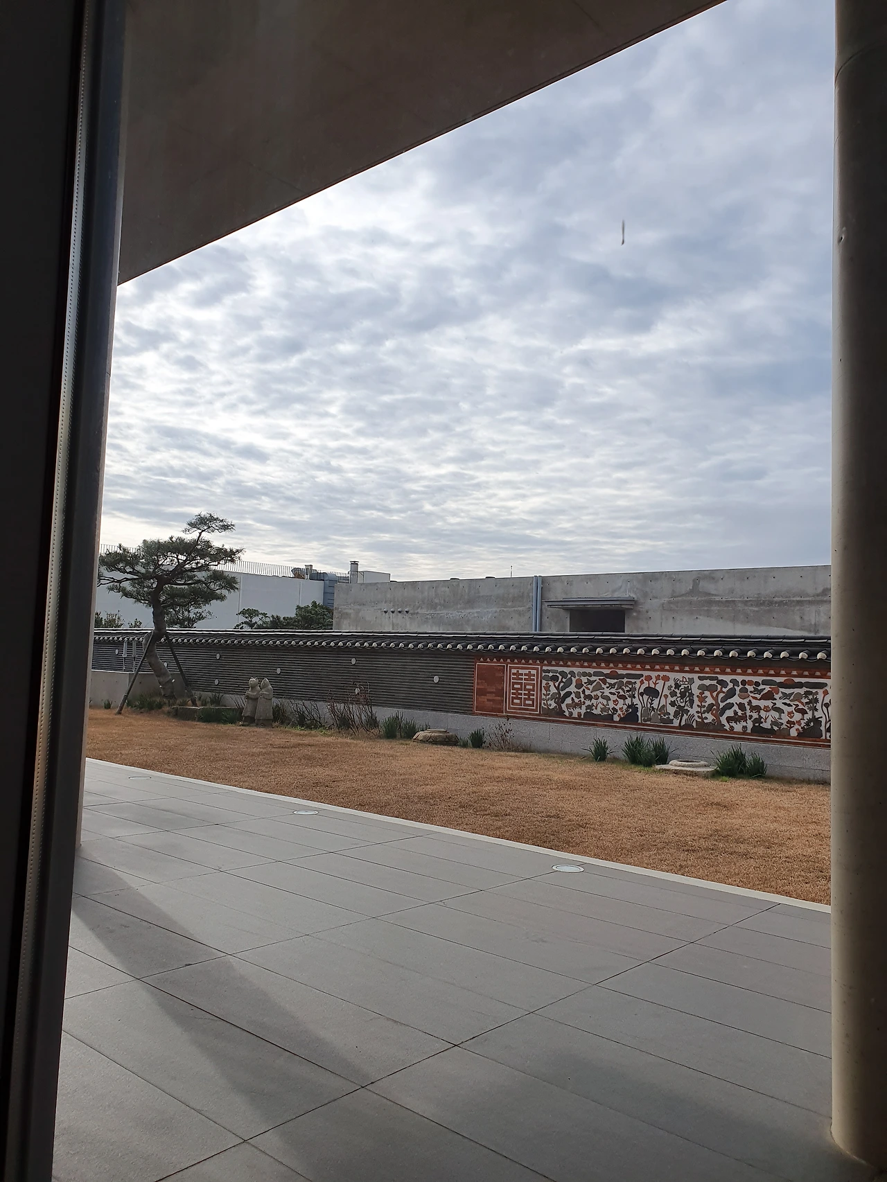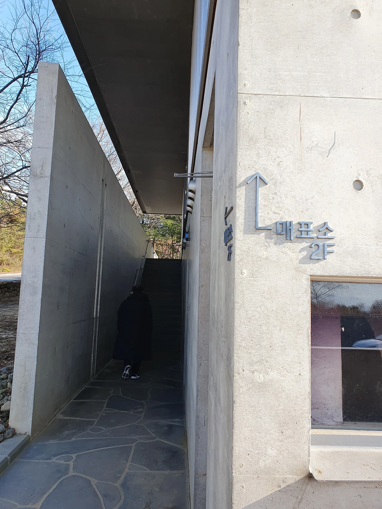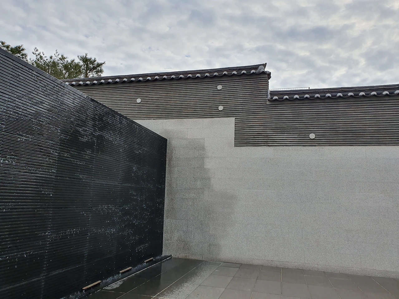 ♡ 노출 콘크리트와 한국적 정서가 어울리도록 돌담과 전통 기와 등을 이용했다.