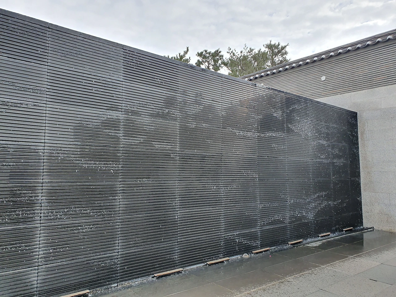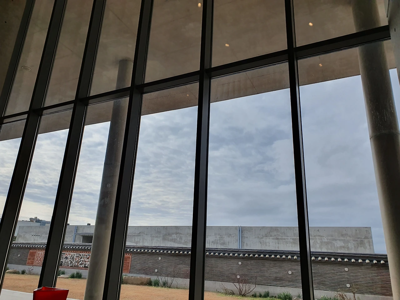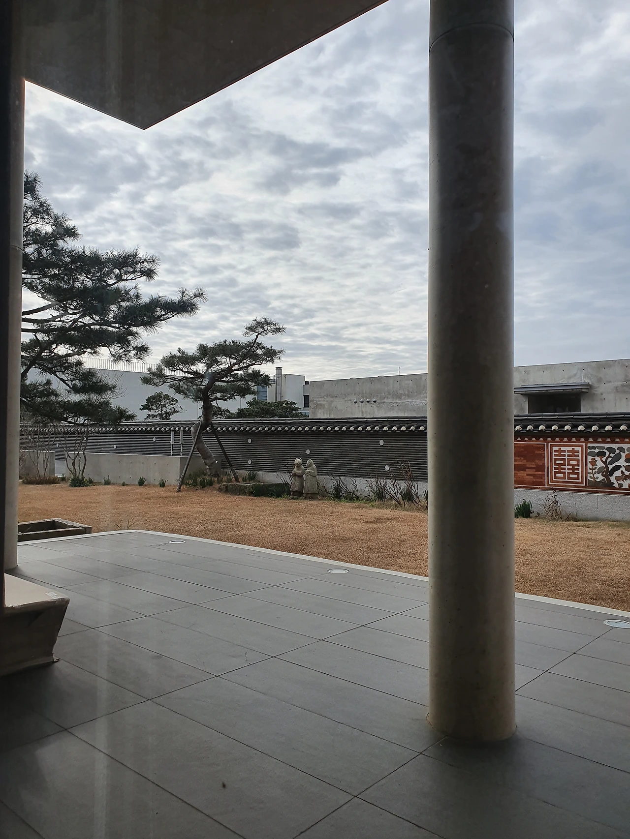 ♡ 노출 콘크리트와 한국적 정서가 어울리도록 돌담과 전통 기와 등을 이용했다.