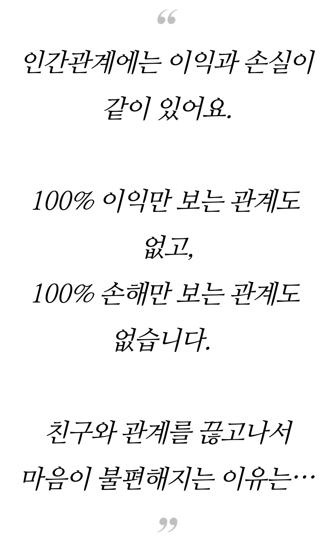 사람과의 관계에서 기쁨을 얻고, 인정 욕구가 가득 채워질 때 행복을 느끼고, 공정함과 도덕성을 가장 큰 가치로 삼는 나는 누구와 친할 수 있을까? 단호하고 까칠하고 원칙주의자인 내 안에도 수많은 망설임과 부드러움과 흔들림이 시시때때로 혼재되어 머리를 든다.