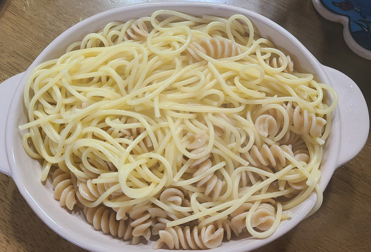 ♡ 파스타면을 삶아 준비한 후 남은 재료와 섞어 오일 파스타로 마무리한다.