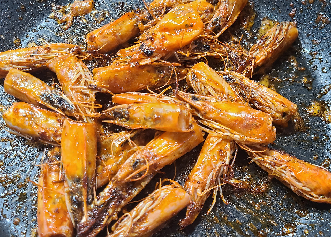 ♡ 마늘이 갈색으로 익으면 새우를 넣는데 너무 오래 익히지 않는다.