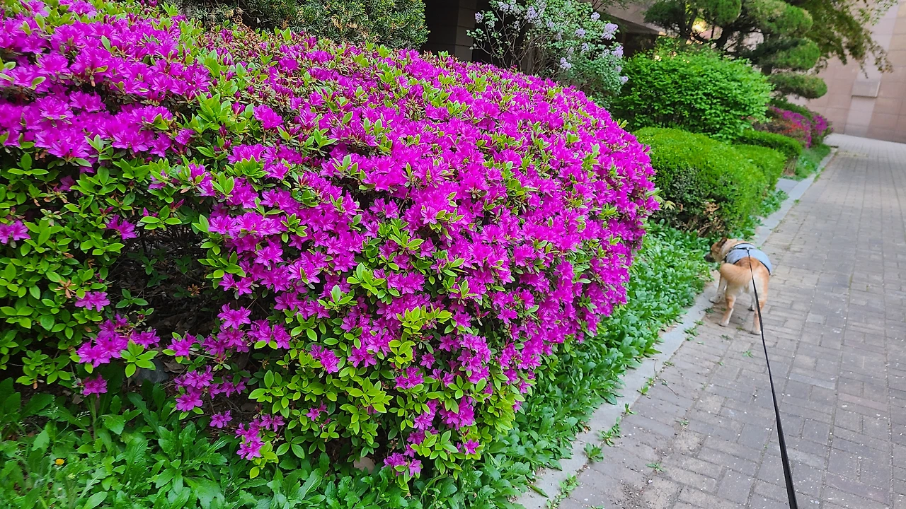 벚꽃이 사라져 아쉬워했더니 철쭉이 통통하게 출렁인다. 탐스럽게 퍼져있는 철쭉이, 송이송이마다 향기를 품고 허리쯤에서 인사를 건넨다. 우리의 눈높이에 맞춰 다양한 색깔과 높이로 꽃송이를 만드는 봄나무들에게 찬사를 보낸다.