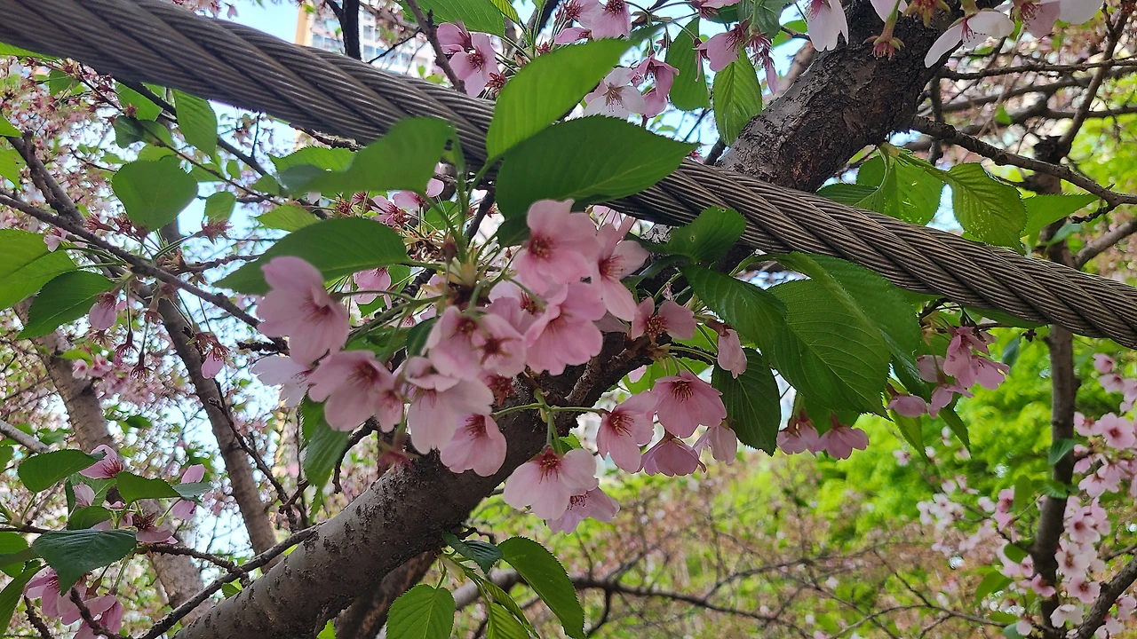벚꽃이 거의 사라진 지금, 늦은 벚꽃이 피었다.