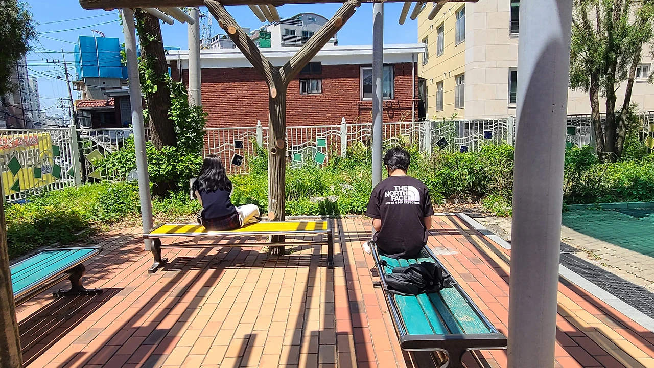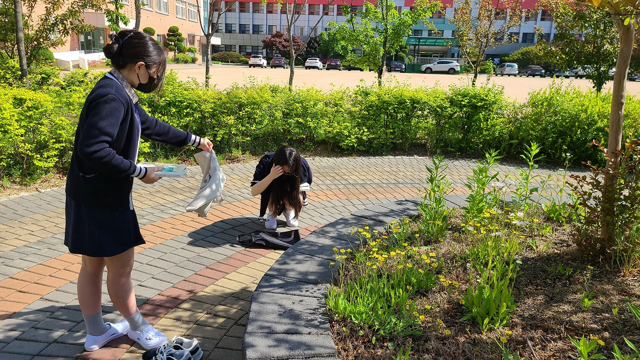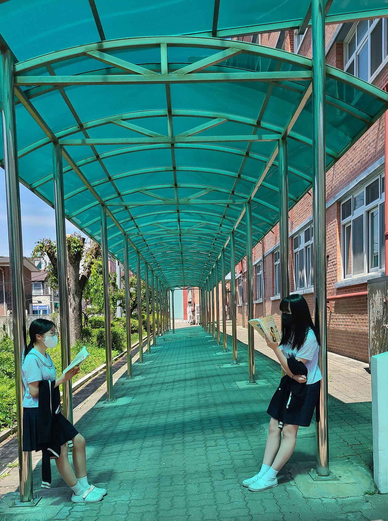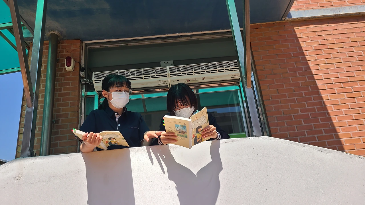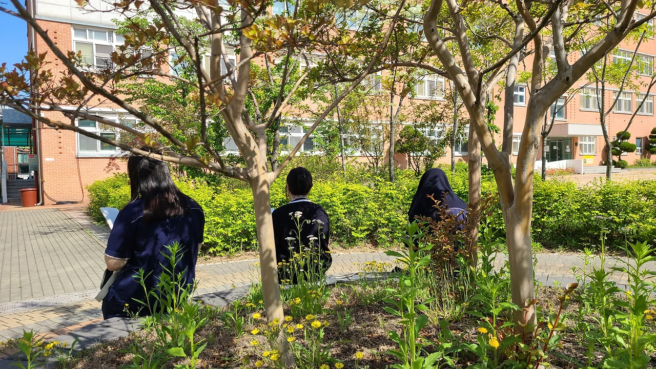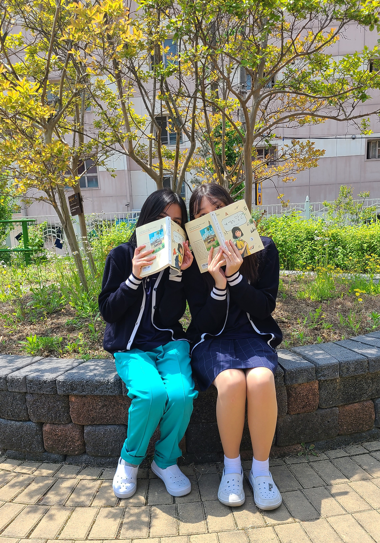 눈부신 햇살이 가득한 5월! 1회 고사도 막 끝났겠다. 책 읽기 딱 좋은 때다....라고 말했다. 게다가 우리 학교는 아름다운 숲으로 조성된 교정도 있지 않은가! 녹음이 우거진 그늘 아래, 시원한 바람을 느끼며 책을 읽는 맛이라니... 이 즐거움을 아이들과 공유하고 싶었다. 다행히 아이들은 교실 밖으로 나간다는 사실만으로도 환호성을 질렀다.