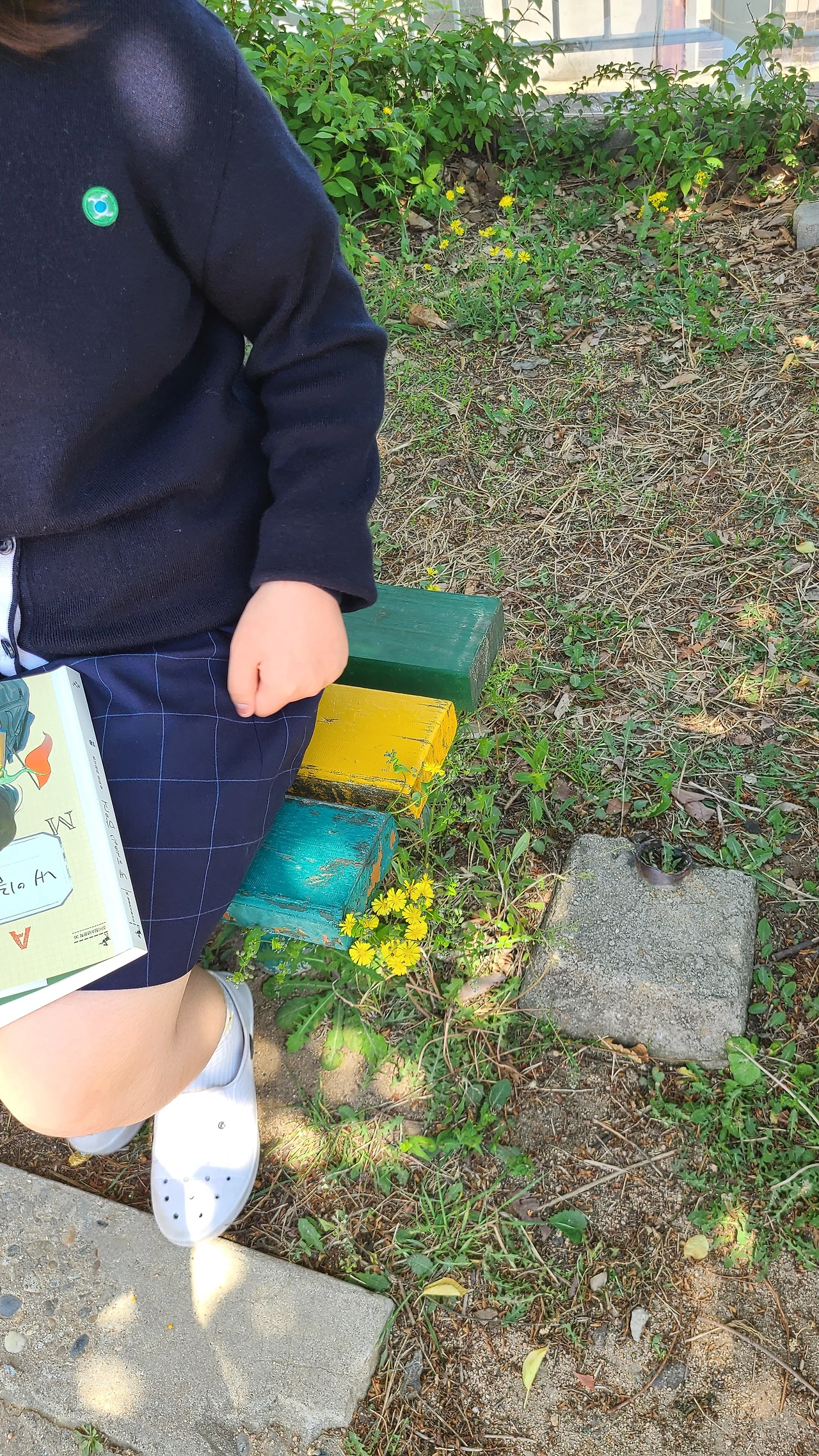 책을 읽다 옆에 핀 들꽃을 보며 친구처럼 예쁘다고 말해 준다.