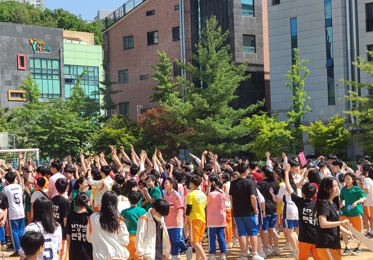 학생들과 선생님들이 함께 줄다리기를 하고, 아이들이 좋아하는 댄스마당을 마련하고, 더위를 날려줄 물줄기를 통해 아이들이 환호성을 지르고, 학생심판 도우미들의 자율적인 질서지도까지.... 다채로운 반티의 색깔들이 모여 생동감과 화려함을 보여주듯이 아이들과 함께 많이 웃은 힐링의 화려한 날이었다. 선생님은 아이들의 마음을 알아주고, 아이들은 선생님의 말을 따라주고... 서로 통하는 소통의 운동장이라 나는 즐거운 것일까?