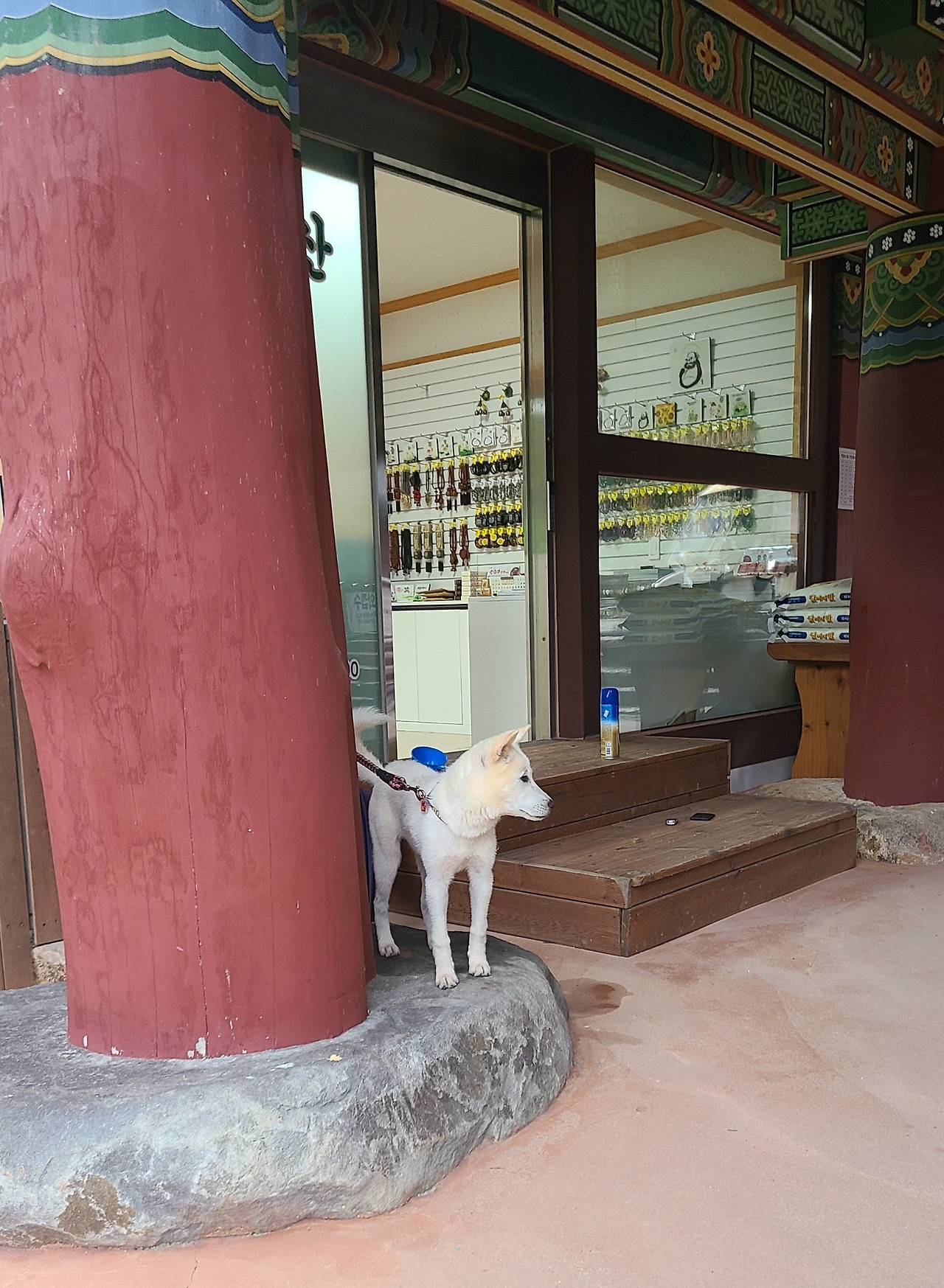 게다가 나에게 특별한 애정을 보이는 흰둥이 강아지 '보리' 덕분에 30분을 광제루에 더 머물렀다. 처음 보았는데도 나에게 고개를 부비대며 친근함을 표현하는 어린 강아지 '보리'가 정말 귀엽고 예뻐서 한참 쓰다듬었다. '보리'가 아프지 않고 건강하게 절에서 잘 지내기를 축원했다.