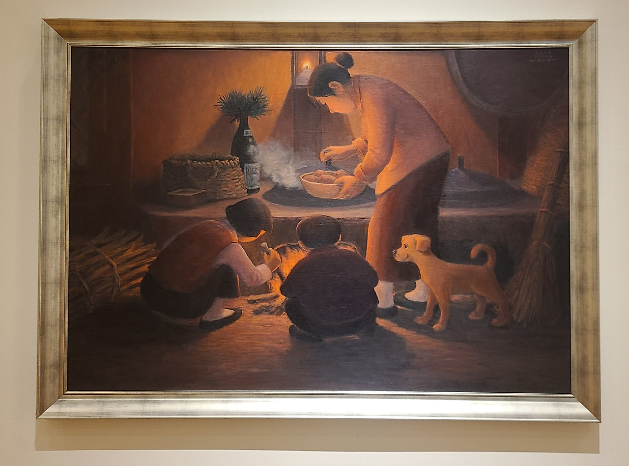 하정웅컬렉션은 1년에 4차례 씩 기획전을 연다는데, 이번 전시회(7/23~9/30) 주제는 '고귀한 나눔'이었다. 그의 전시품을 돌아보며 마음을 채우는데 특히 강철수화가의 작품이 눈에 들어왔다. '겨울이야기'(2010, 캔버스 유채)라는 그림 앞에 한참 서있었다. 오누이와 엄마, 검정고무신과 단발머리, 모락모락 가마솥의 김과 아궁이의 따스한 불빛 그리고 강아지까지! 비록 고단하고 어둑한 그 시절 부엌이지만 따스함과 정겨움이 한가득 둘러싸여 있었다. 이 감동이 이어져 여행 후 며칠 동안 강철수화가의 그림을 찾아보았다. '남도의 빛'이나 '미완의 꿈' 등 나를 움직이는 그림들이 많이 있었다.