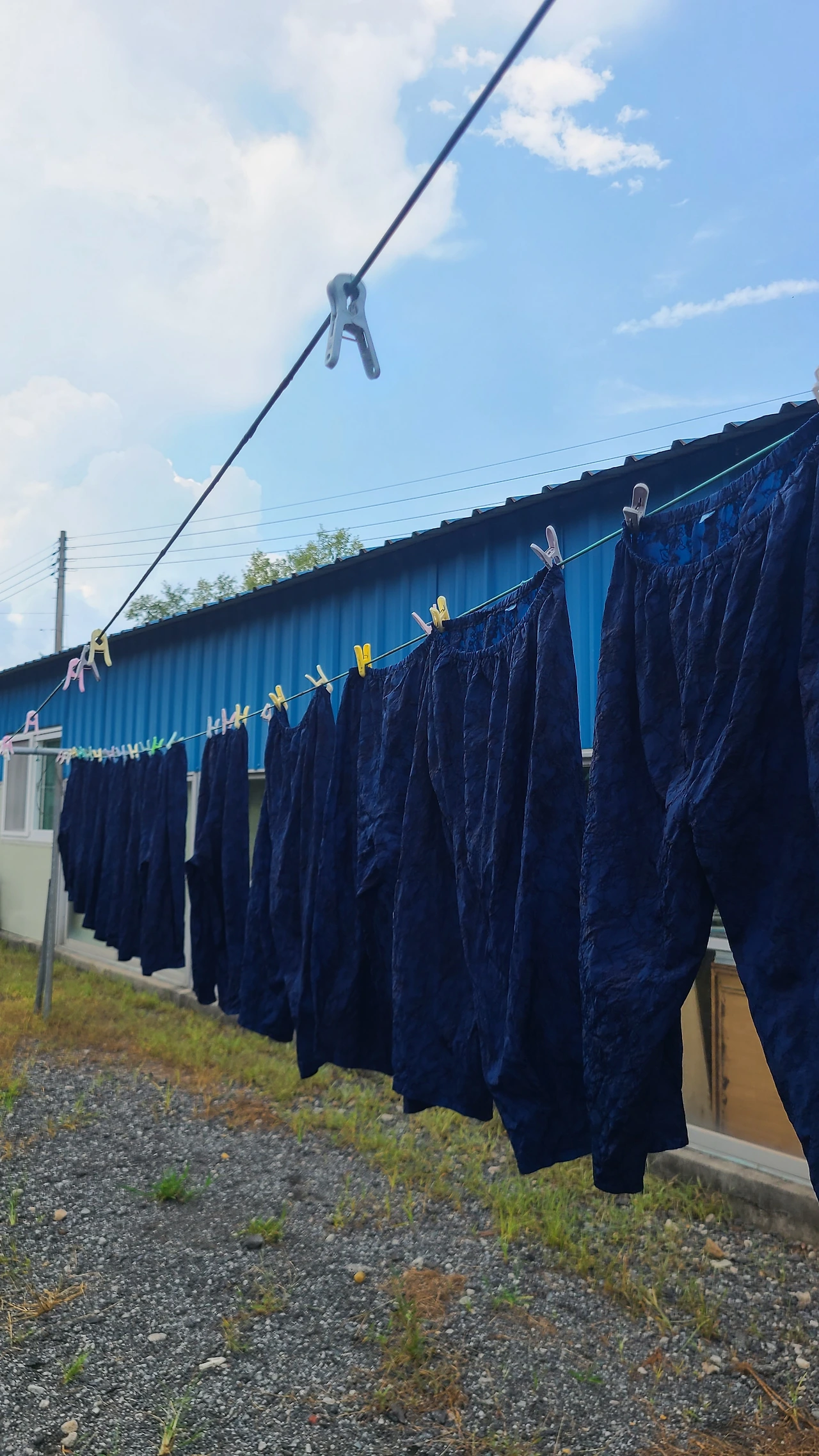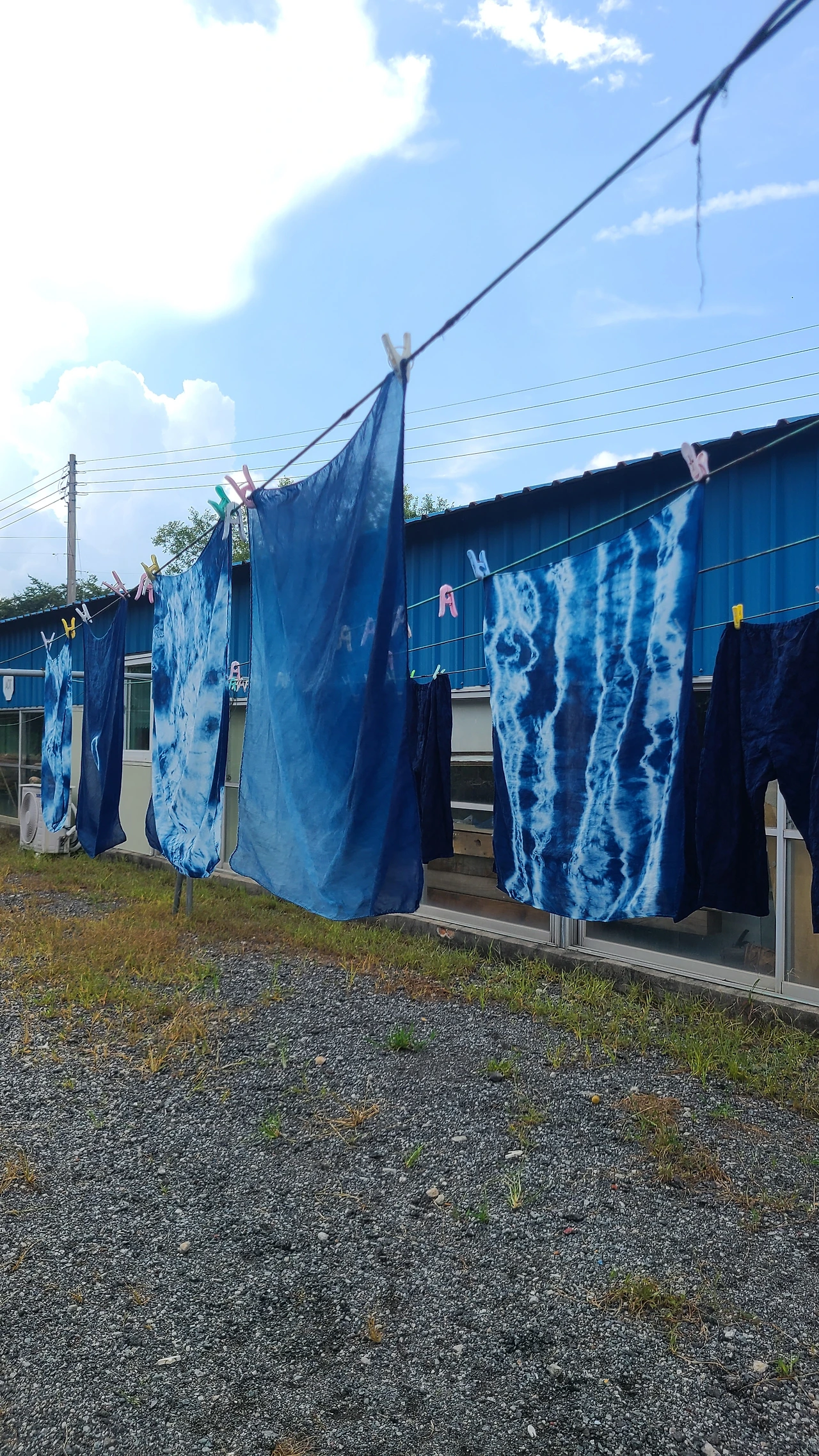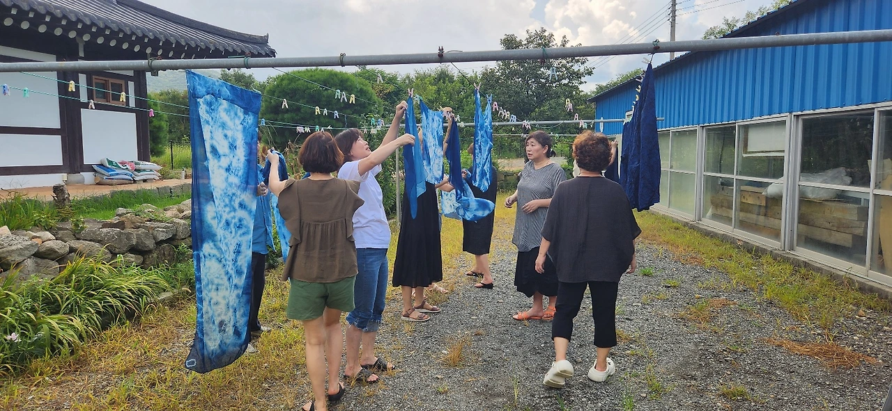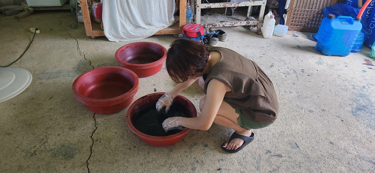 비가 내리기 전 오전에 들른 영암의 전통천연염색활동도 색다른 체험이었다. 쪽을 원료로 한 천연염색, 폭염 아래 물들이고, 주무르고, 빨고, 널고, 다시 거둬 빨고 널고. 그렇게 마련한 스카프와 고쟁이가 하늘빛과 어울려 더 파랗게 쪽빛으로 하늘거렸다. 이곳은 친구들이 모여 함께 체험하고, 함께 놀이하고, 함께 웃을 수 있어서 더 좋은 시간이었다.