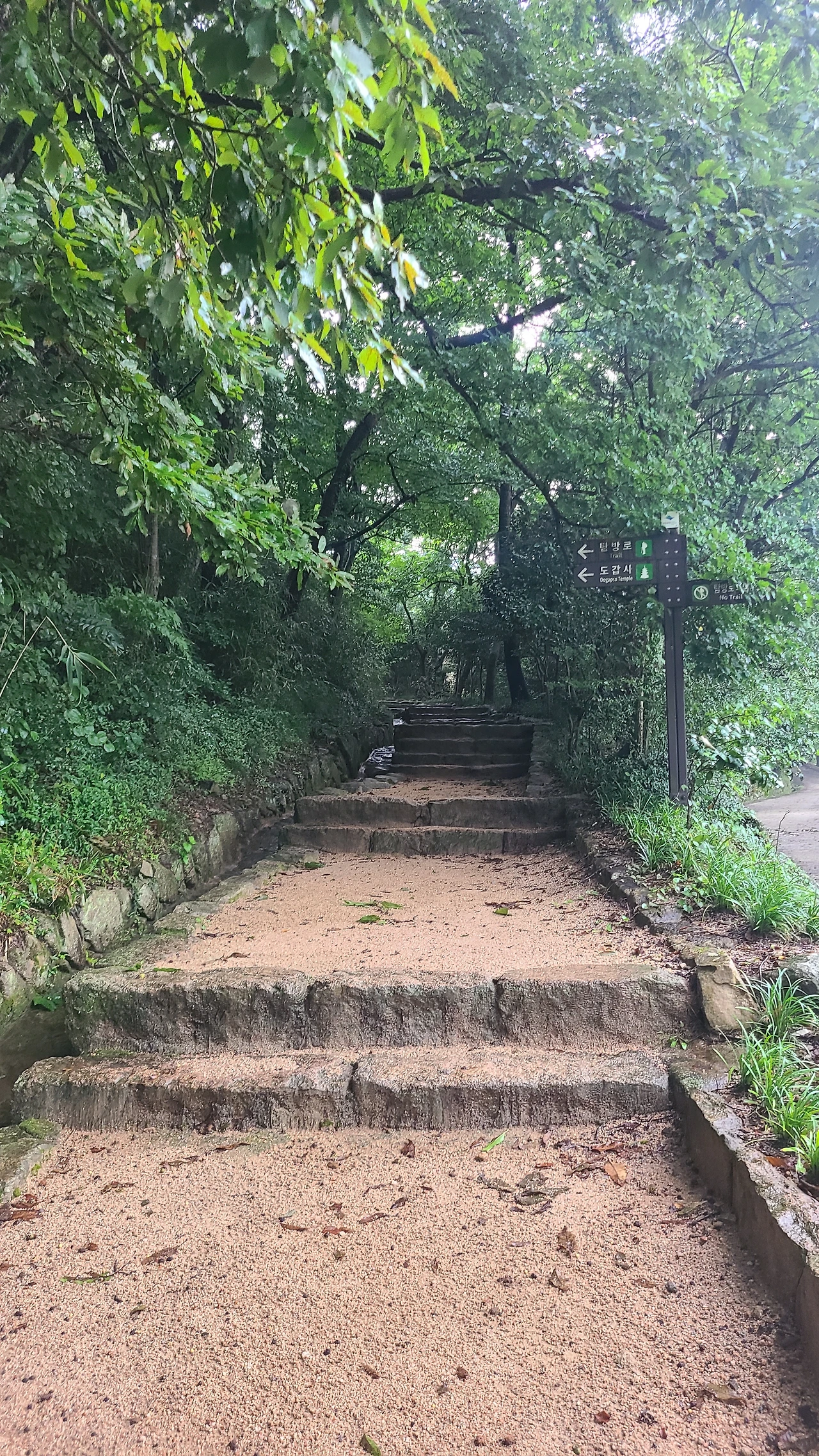 해탈문을 지나 녹음이 우거진 오솔길을 따라 내려가니 도갑사 탐방로라는 푯말이 보인다. 개울을 잇는 아치형 다리(옥룡교)와 폴짝폴짝 뛰고 싶은 징검다리, 그 너머 물빛으로 빛나는 수국 꽃밭! 보슬비 내리는 인적이 드문 이 길을 계속 걷고 싶었다. 우연히 들른 도갑사에서 이런 호사를 누리다니... 감사하다.