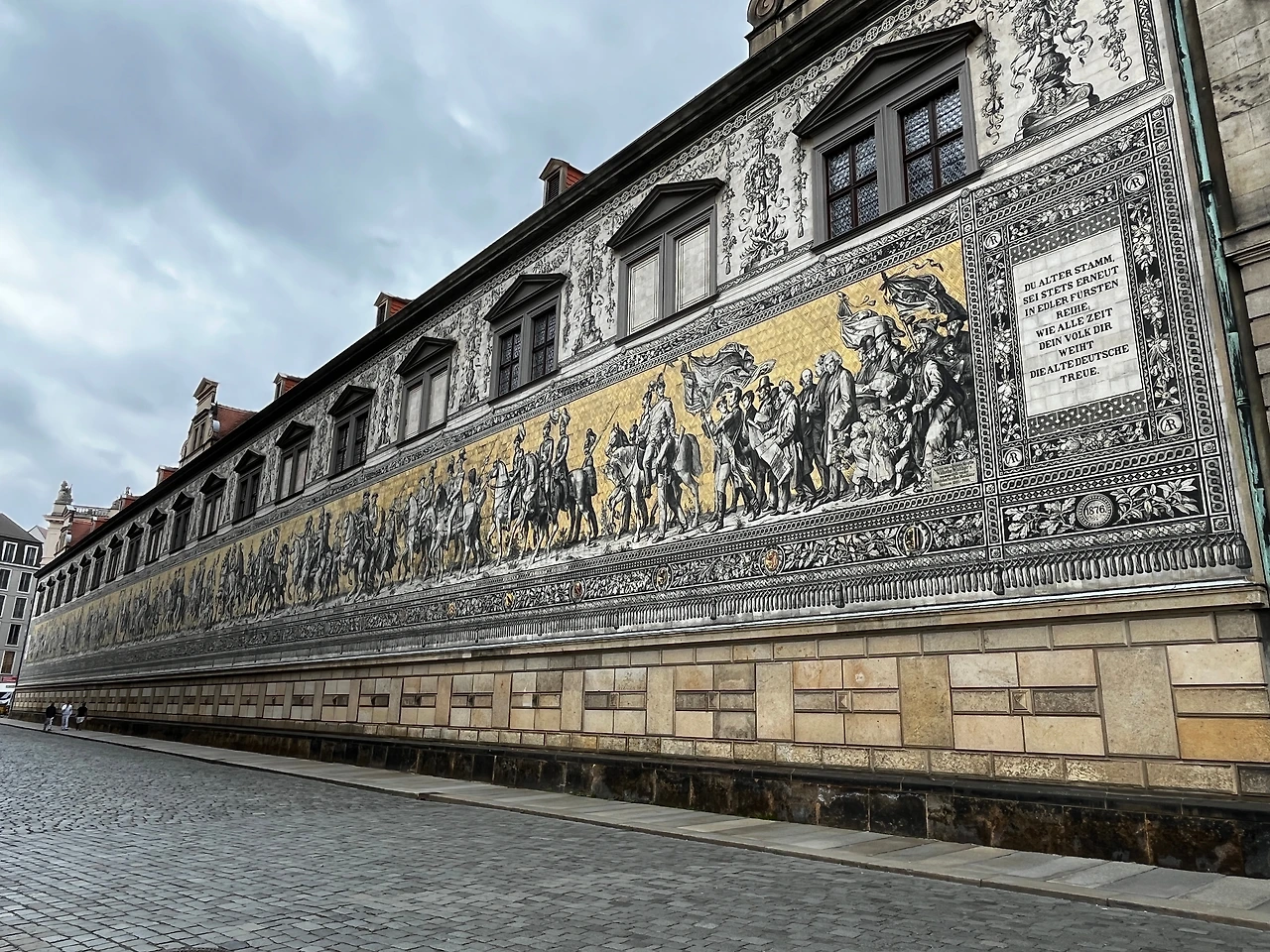 군주의 행렬(Procession of Princes)은 이곳 작센 지방을 다스렸던 후작, 공작, 선제후 등등의 모습을 순서대로 그려낸? 구워낸? 벽화이다.