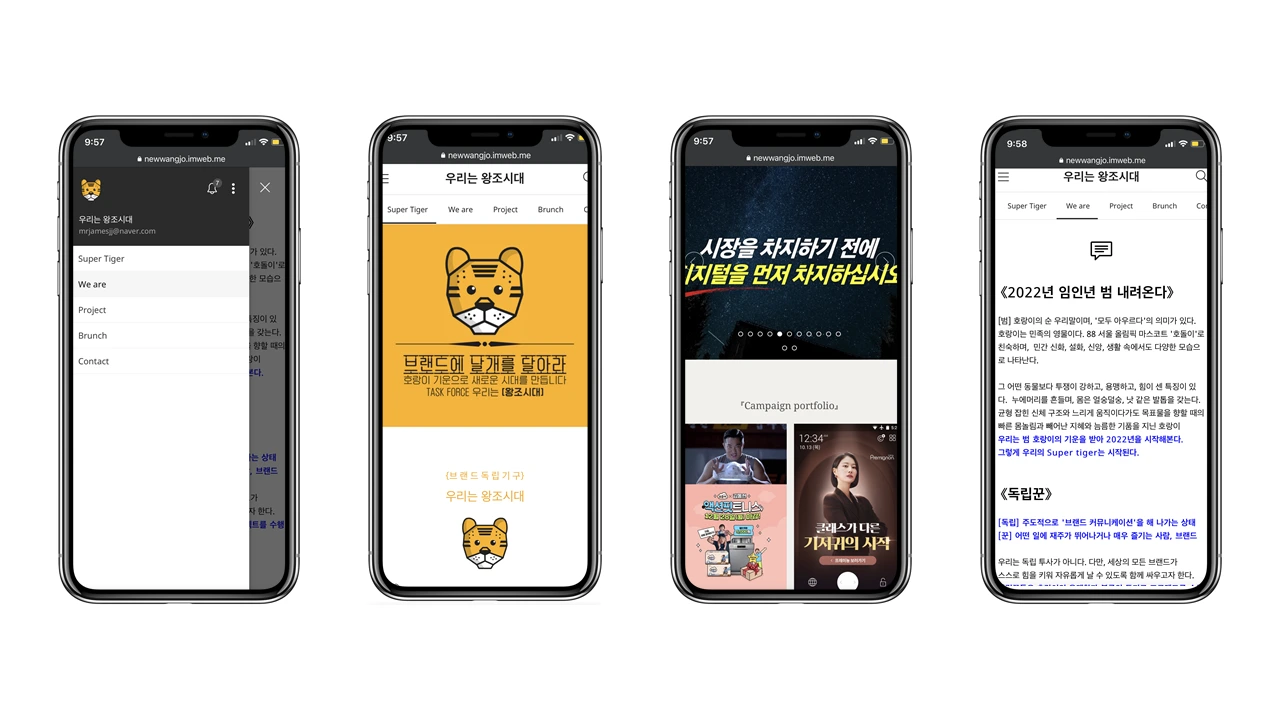 익숙하지만, 사뭇 진중한 키워드들이 노출되었다. 모든 시작의 발단은 '왕조시대'였다. 왕(王)씨 성을 가진 마케터인 나는 조(趙)씨 성을 가진 아내를 만났다. 그리고 2022년에 딸 단아(호랑이 띠)가 태어날 예정이다. 그래서 '왕조시대'가 되었다. 여기에 지금까지의 '삶의 이야기'를 덧하다 보니 '브랜드 컴퍼니&메이커'로서의 방향이 설정된 것이다.