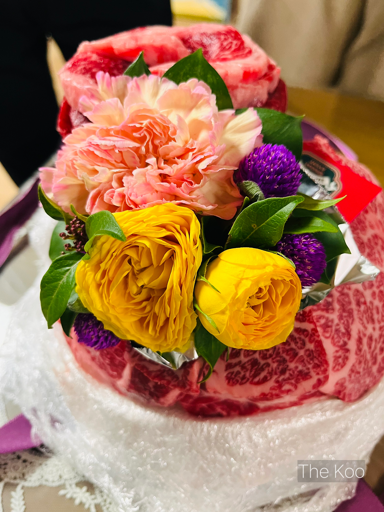 푹 고아 진국이 된 한우갈비탕을 한 솥 끓여 준 선물에 이어 꽃이 담긴 한우케이크까지! 이렇게 응원이 한우한우하니 암 따위는 진짜 한방에 낫겠다!