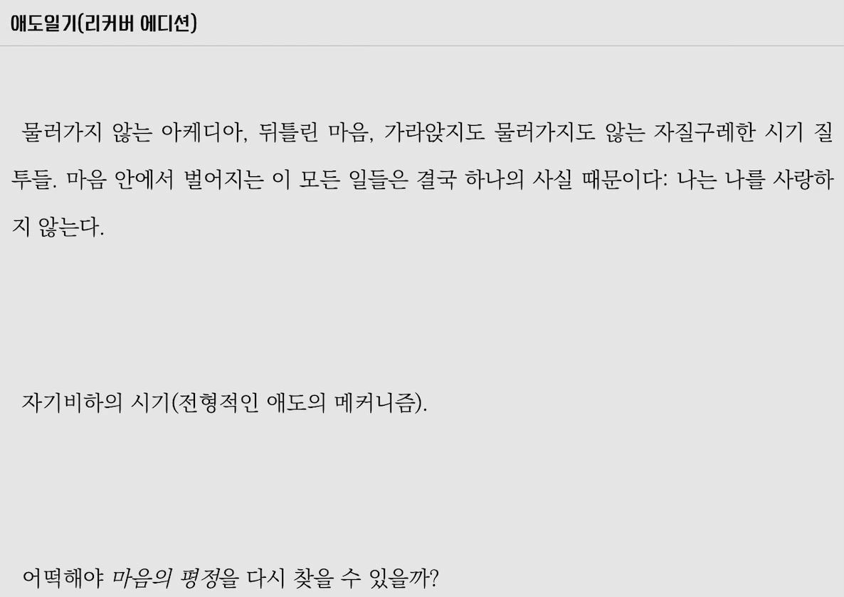 아, 이게 바로 저 책에 나온 자기 비하이자 뒤틀린 마음인 건가.
