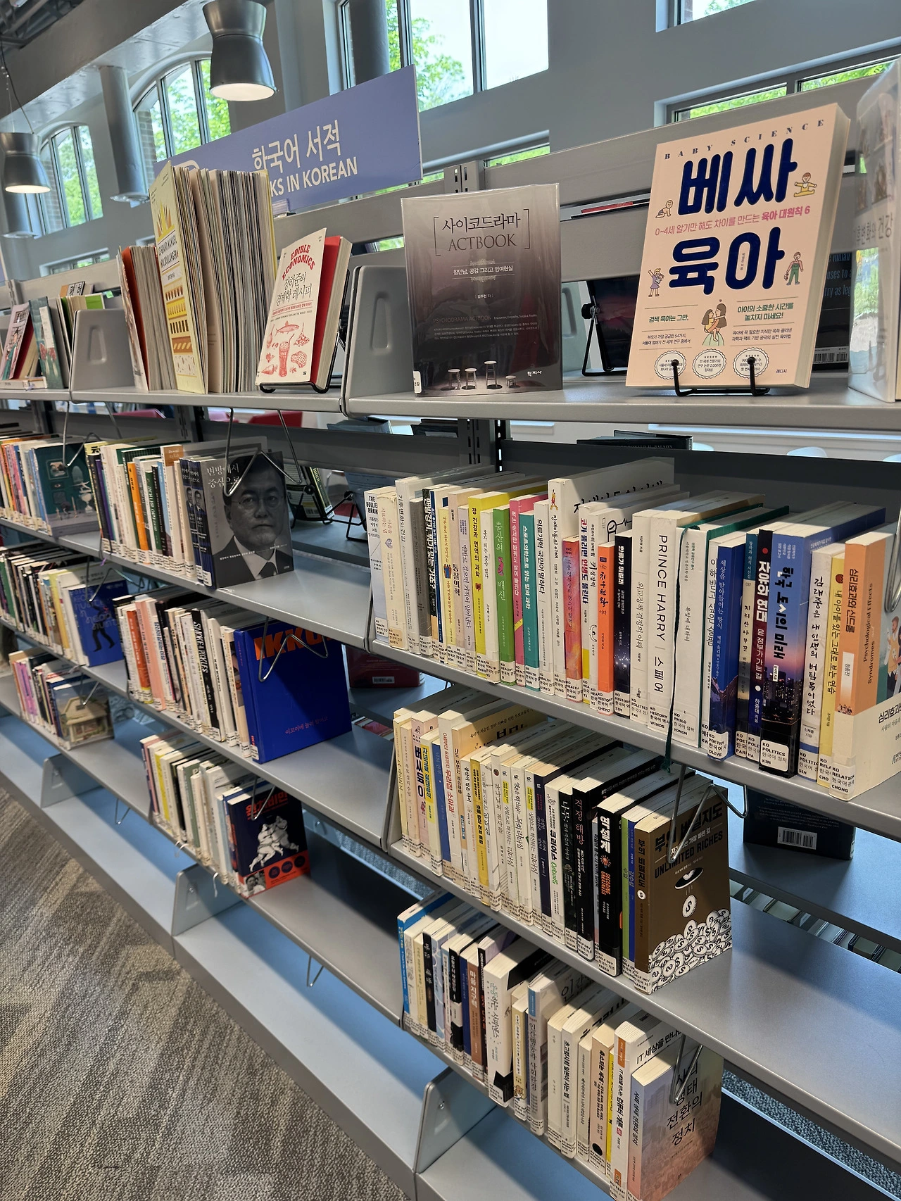 금세 아이를 데리러 갈 시간. 문득 여기는 한인타운이니 한국 책 코너가 있을 수 있겠다는 생각이 들었다.