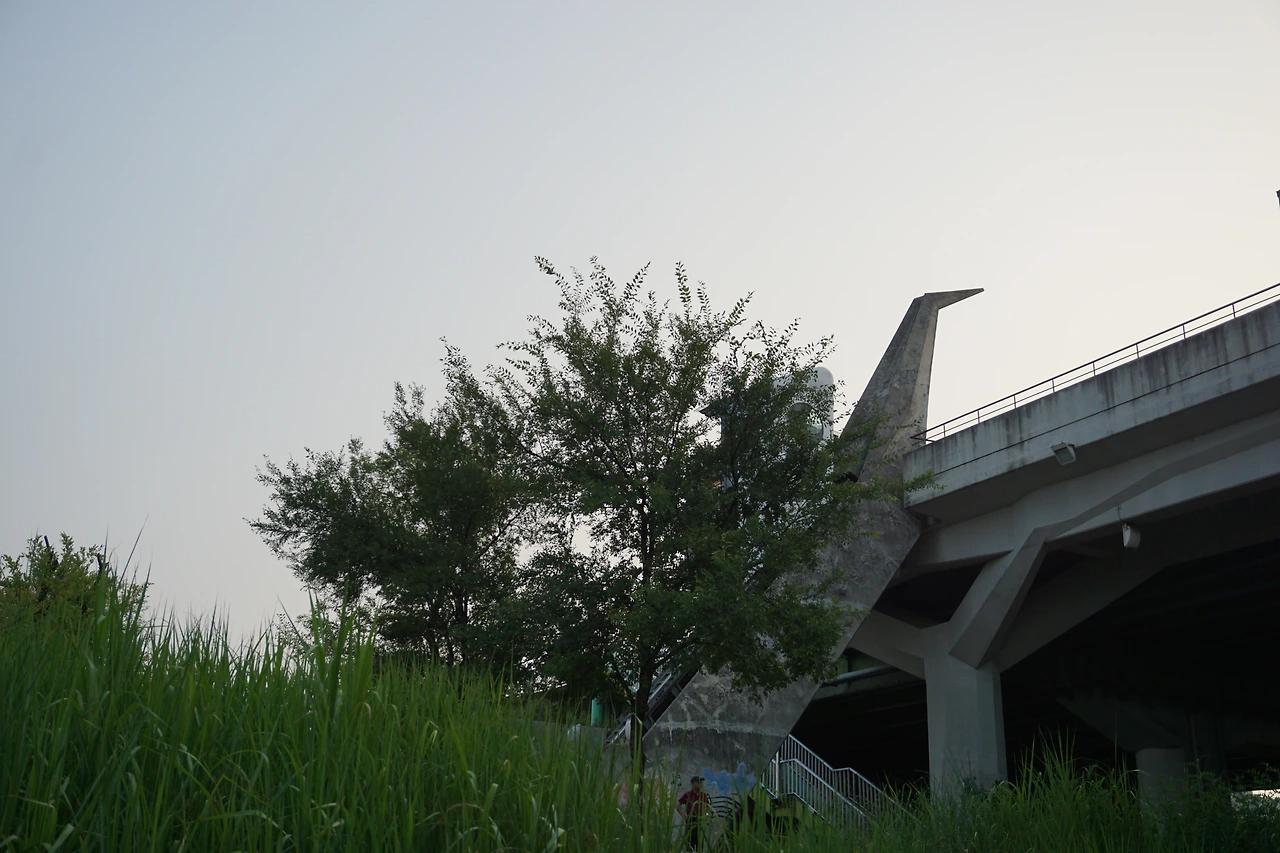 내려와서는 한강 둔치를 걸어다니며 계속 사진을 찍었다. 모든 사진에 글을 한 타래씩 달아가며 모든 사진을 설명해 가다가는 끝이 나지 않을 것 같아. 한강 둔치에서 찍은 한강 사진은 생략하기로 했다. 한강은, 아니 한강 뿐만 아니라 넓은 물은 몇 시간을 지켜보아도 질리지 않는다. 강바람을 쐬면서 가만히 앉아 있는 것 만으로도 힘을 얻는 것 같다. 한강에서 벗어나서, 선유도로 가기 위해서 양화대교 쪽으로 걸어갔다. 가는 길에 무언가 용도를 알 수 없는 오브제가 다리에 달려 있는 것을 보았는데, 근처의 나무와 어우러져 마치 원앙같은 모습을 하고 있기에 카메라에 답았다. 이 사진은 후처리를 하지 않은 사진인데, 앞의 국회의사당 사진과 비교해 보면 후보정 전과 후의 색감차이가 확연히 보인다.