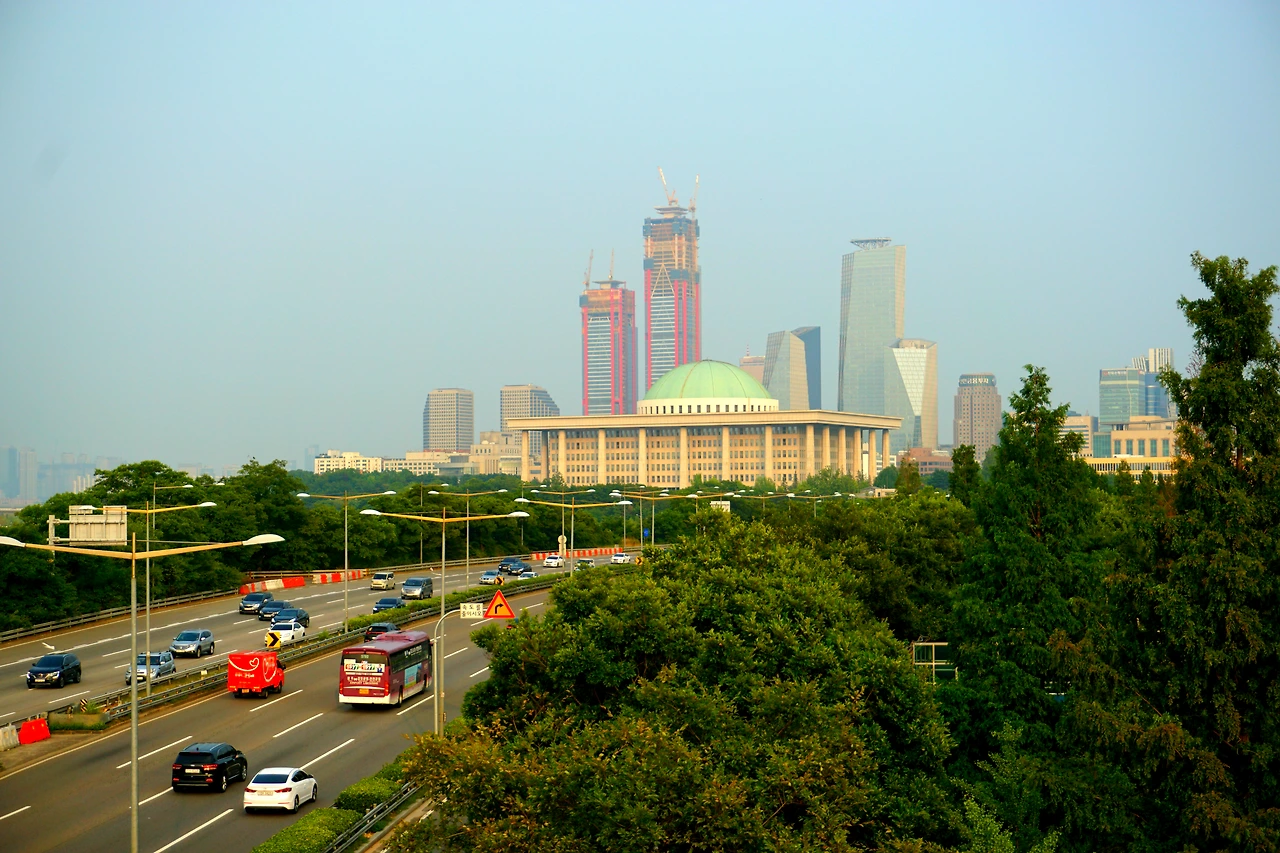 당산역을 나와 제일 먼저 눈에 띈 것은 국회의사당이었다. 사진에는 어느 정도 후처리를 해서 선명하고 예쁘게 나왔지만, 실제로 볼 때는 뒤의 높은 건물들과 함께 안개같은 것에 둘러쌓여 있어서 현대판 마왕성이 있다면 저렇게 생기지 않았을까하고 생각했다.