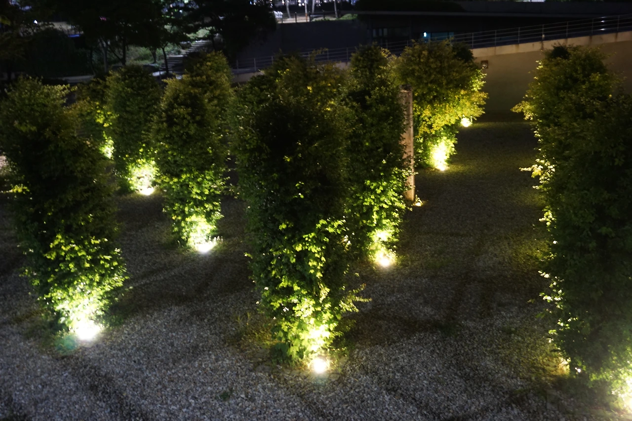 간혹 계단이나 다리가 삐걱거리기는 하지만, 전반적으로 배치된 정자나 적절한 위치에 배치된 편의점도 그렇고 아침이나 점심에 돌아다니기보다는 선선한 저녁바람 쐬면서 돌아다니기에는 적한한 것 같았다. 느즈막이 나온 나 자신을 칭찬하면서 여기 저기 둘러보았다. 주로 식물들에 LED를 쏘아 만든 장식물이 많았는데, 나무의 생장에 LED가 영향을 주지는 않을까 하는 의문이 생겼다.