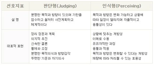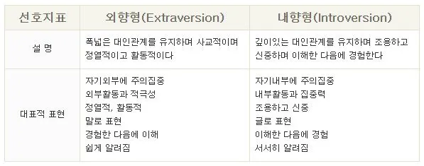 [선호 경향 - 출처 : 한국 MBTI 연구소]