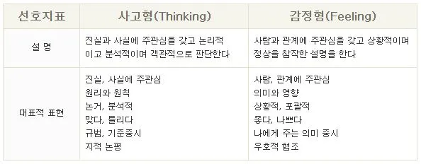 ③ 사고형(thinking)과 감정형(feeling)
