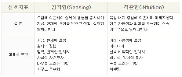 ② 감각형(sensing)과 직관형(intuition)